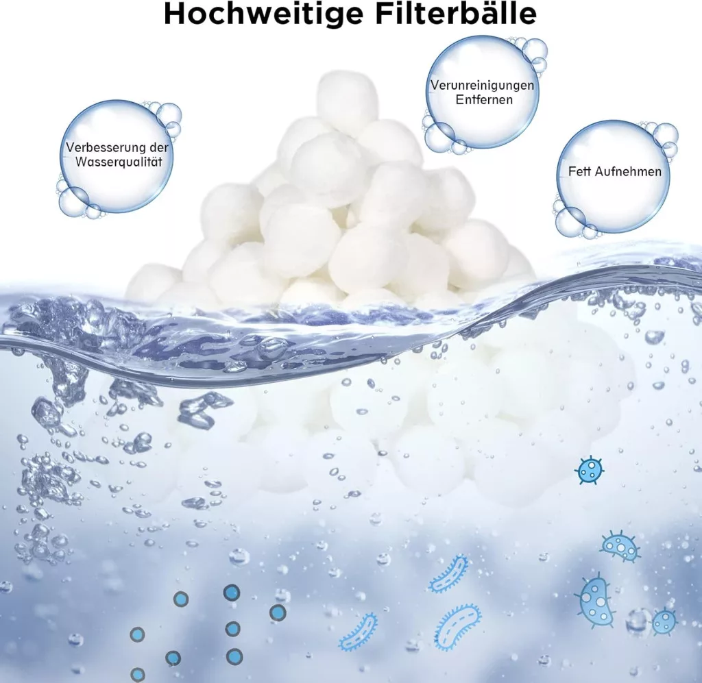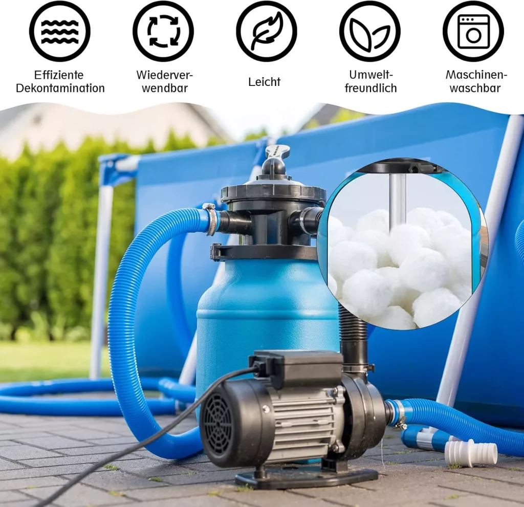 Cel mai important avantaj al bilelor filtrante este ușurința de manevrare și faptul că sunt lavabile. Spre deosebire de nisipul filtrant tradițional, care se aglomerează și se întărește în timp, aceste bile își mențin elasticitatea și capacitatea de filtrare pentru o perioadă lungă de timp. Pot fi curățate simplu în mașina de spălat, astfel încât întreținerea este rapidă și eficientă.