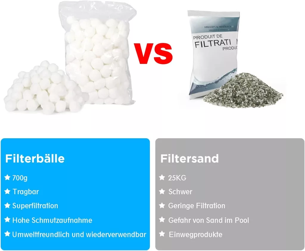 Bilele filtrante Filter Balls oferă cea mai bună soluție de pe piață pentru filtrarea apei. În comparație cu nisipul filtrant tradițional, acestea au numeroase avantaje, care oferă economii semnificative și confort pe termen lung.