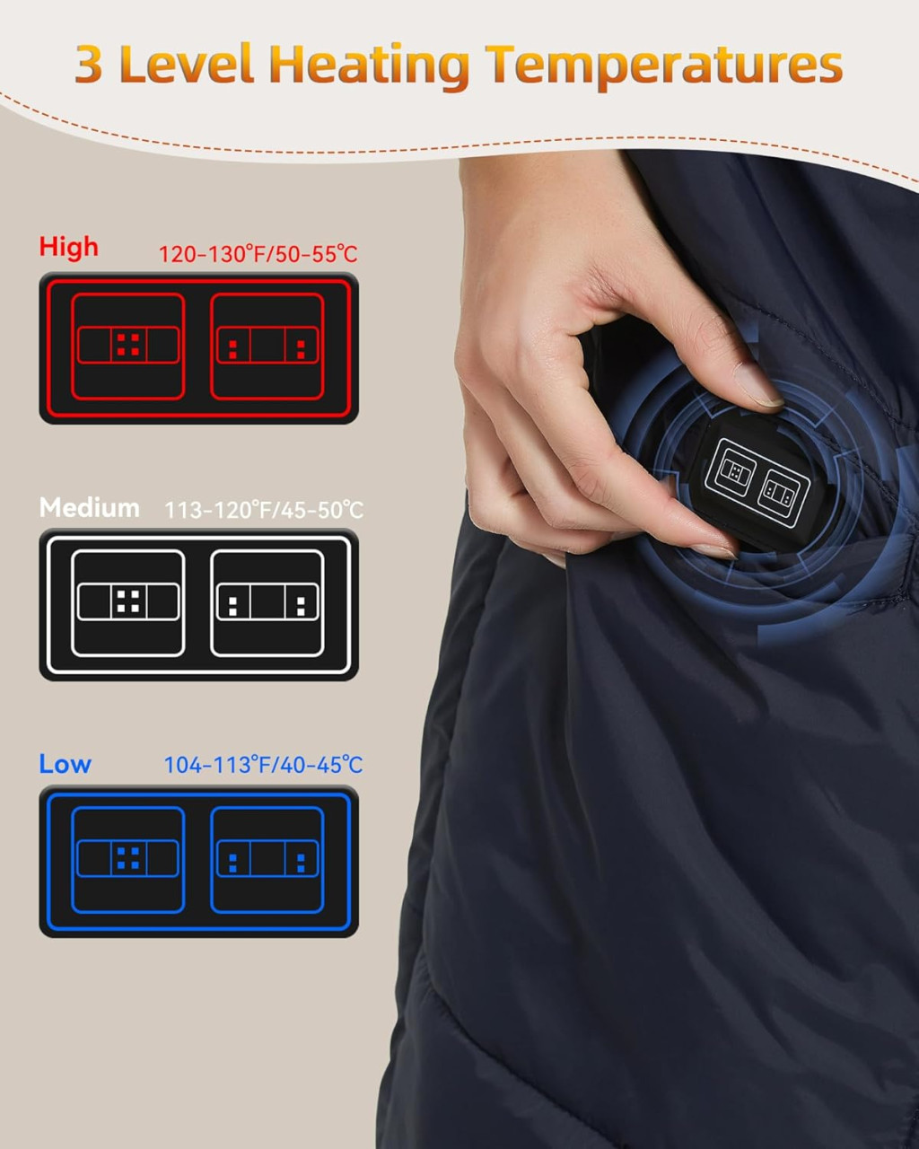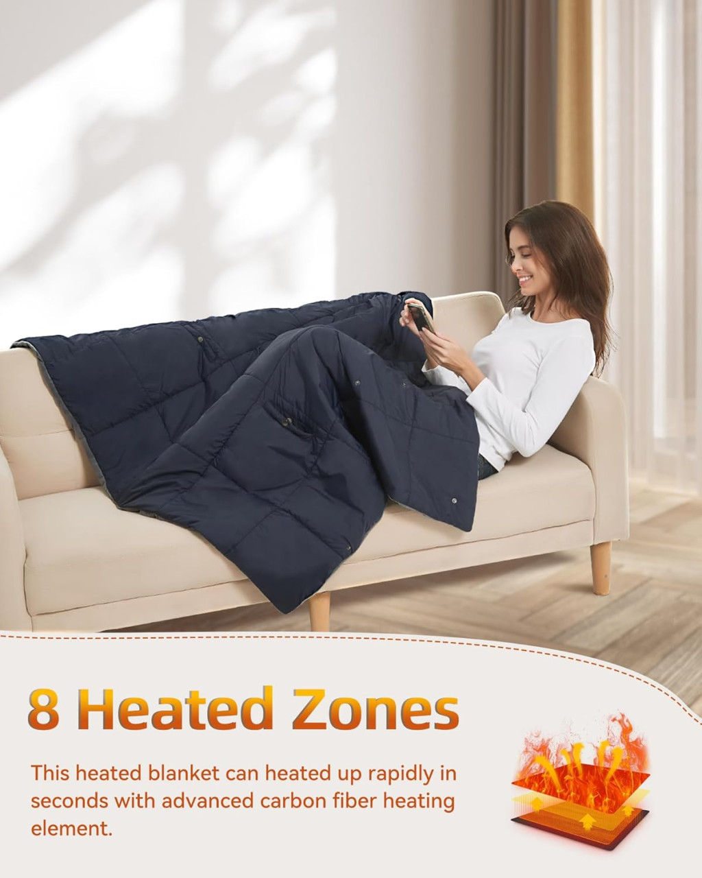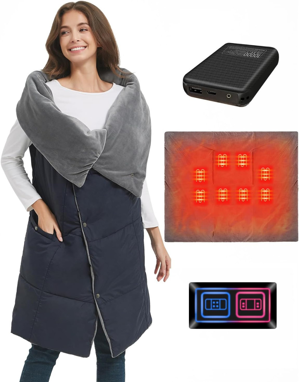 Pătură electrică încălzitoare FERNIDA, cu acumulator 7.4V, șal încălzit fără fir pentru acasă, birou, călătorii, drumeții, albastru.