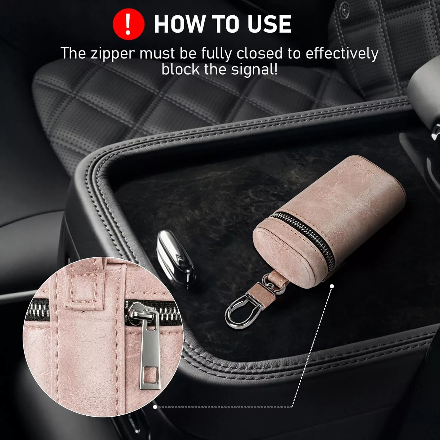 Geanta Faraday pentru chei auto MOLSHINE Keyless Go Protection reprezintă o soluție universală de calitate premium pentru protejarea cheilor mașinii tale. Acest dispozitiv modern de siguranță combină un design elegant cu cea mai avansată tehnologie de blocare a semnalului, protejându-ți cheile auto împotriva accesului neautorizat și a furturilor prin amplificarea semnalului. Învelișul din piele ecologică de culoare roz nu este doar practic, ci și un accesoriu stilat pentru utilizarea de zi cu zi.
