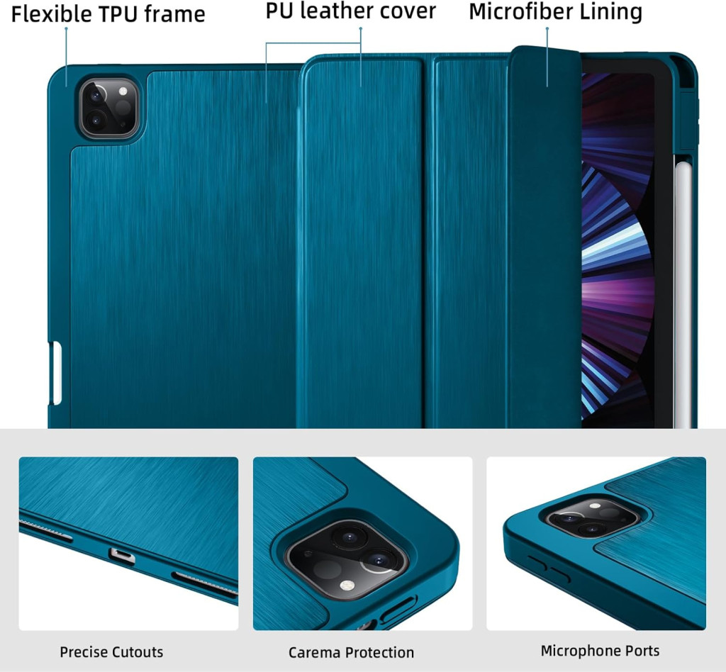 Husa Vobafe iPad Pro 11 este o alegere excelentă pentru cei care caută protecție premium pentru iPad-ul lor Pro. Suportul integrat pentru creion, funcția de trezire/adormire magnetică și suportul triplu oferă funcții practice pentru utilizarea zilnică. Culoarea elegantă albastru peacock și materialele robuste asigură că iPad-ul Pro rămâne în siguranță și elegant pentru o perioadă lungă de timp.