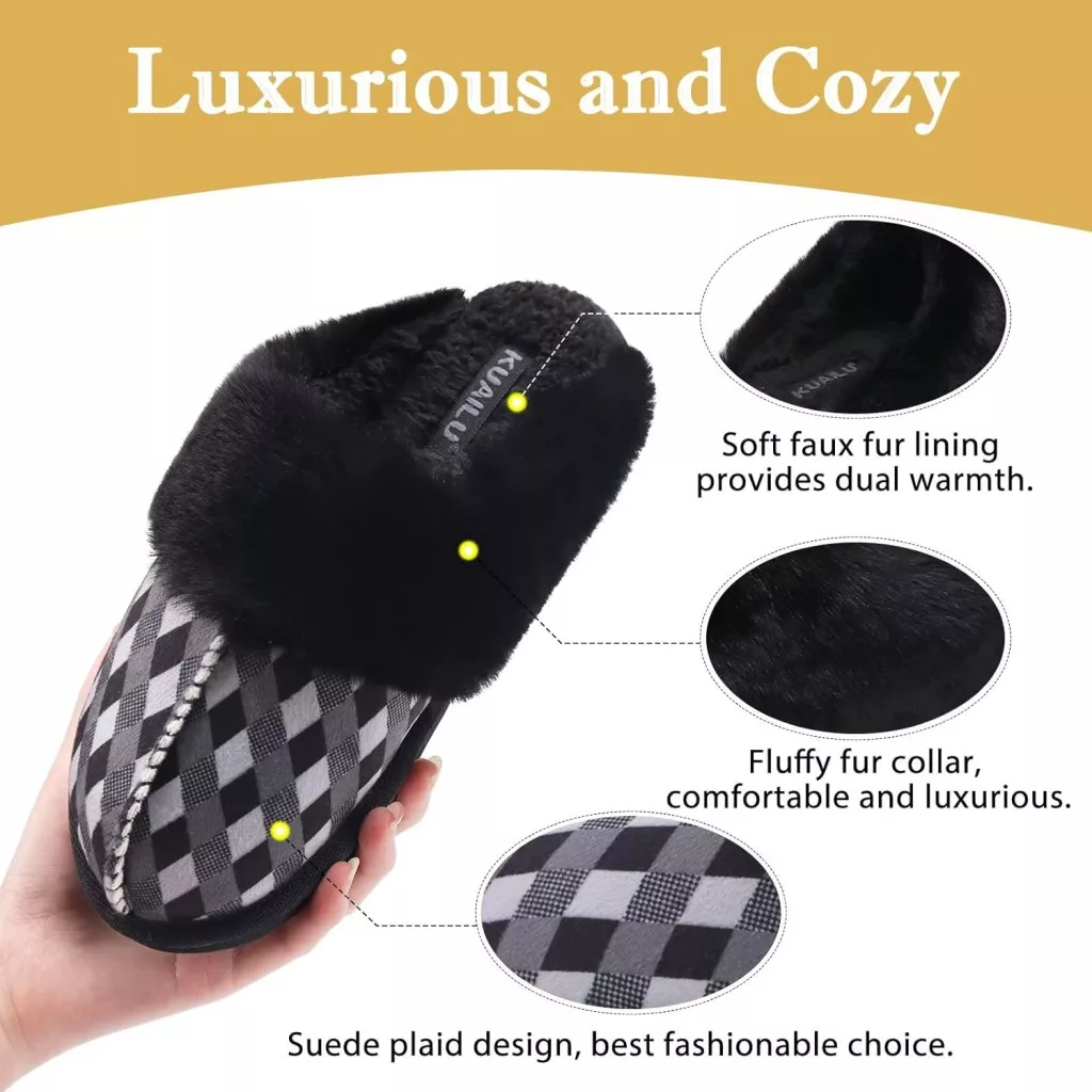 Papuci de iarnă moi și plușați pentru femei KuaiLu - Branț din spumă cu memorie ???? Prezentare Generală a Produsului