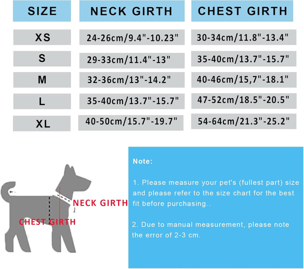 ⚠️ Important: Înainte de a cumpăra, verificați circumferința maximă a pieptului și a gâtului animalului. Dimensiunea L este, de obicei, potrivită pentru o circumferință a pieptului de 30-50 cm, dar măsurătorile individuale asigură cea mai bună potrivire.