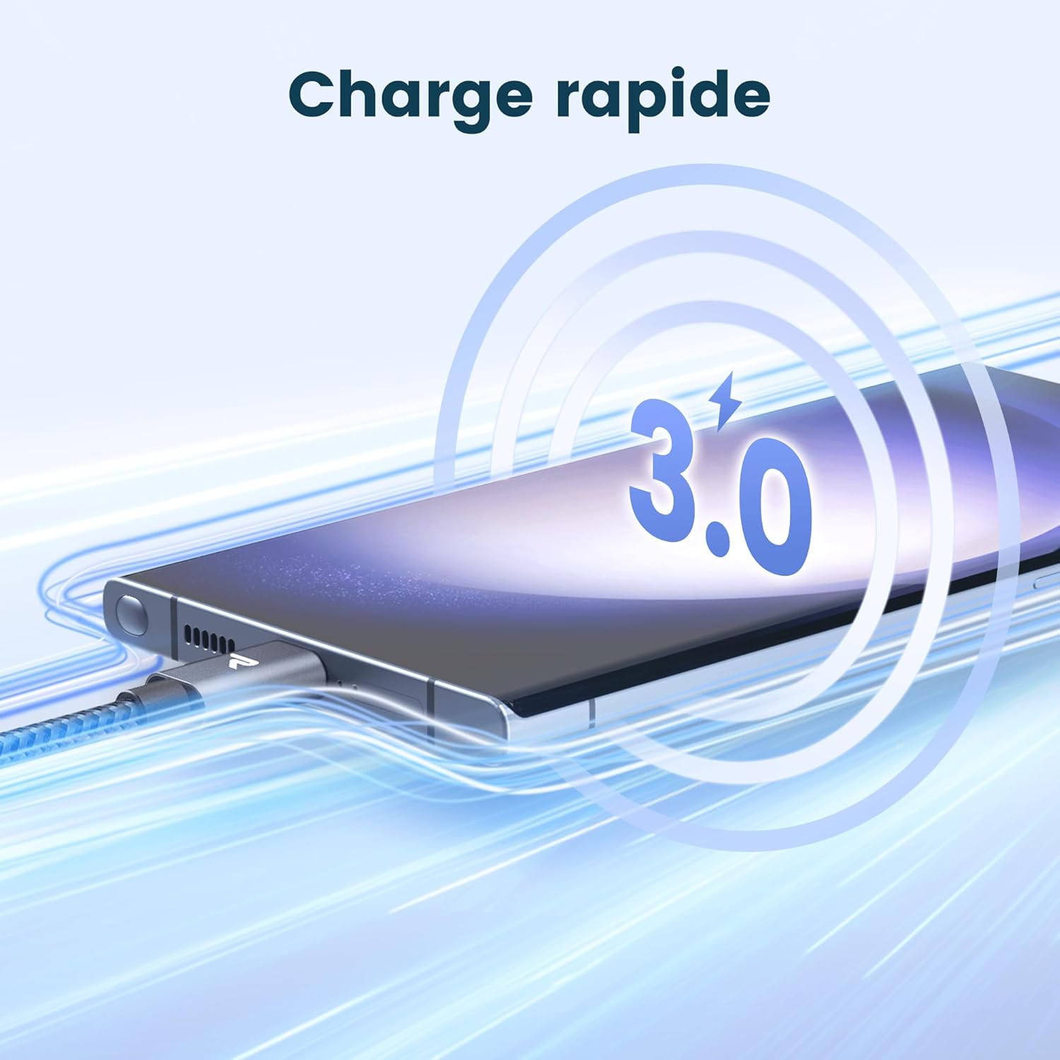Calitate și fiabilitate: Cablul RAMPOW trece prin controale stricte de calitate. Fiecare cablu este testat cu trei dispozitive USB Type-C diferite pentru a garanta performanța optimă de încărcare și sincronizare.