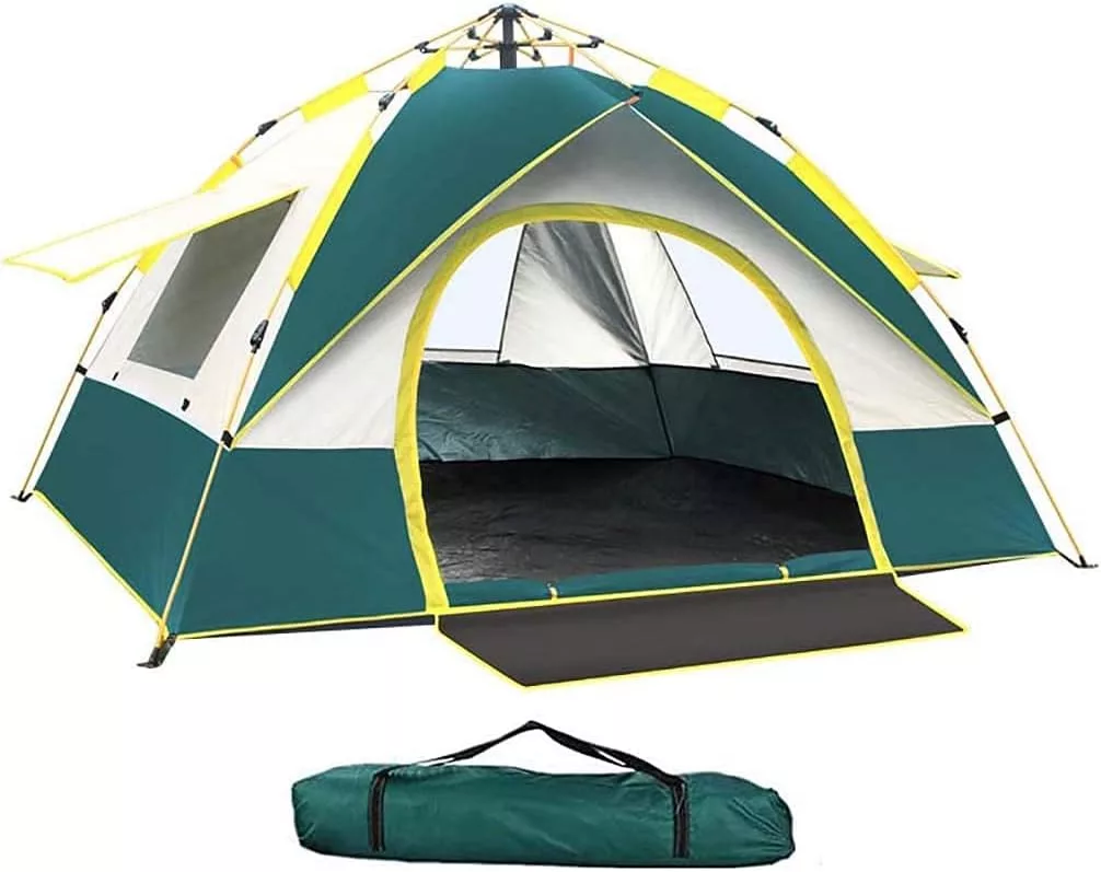 Cort pop-up impermeabil, rezistent la vânt, ușor, pentru camping, 3-4 persoane, cu geantă de transport