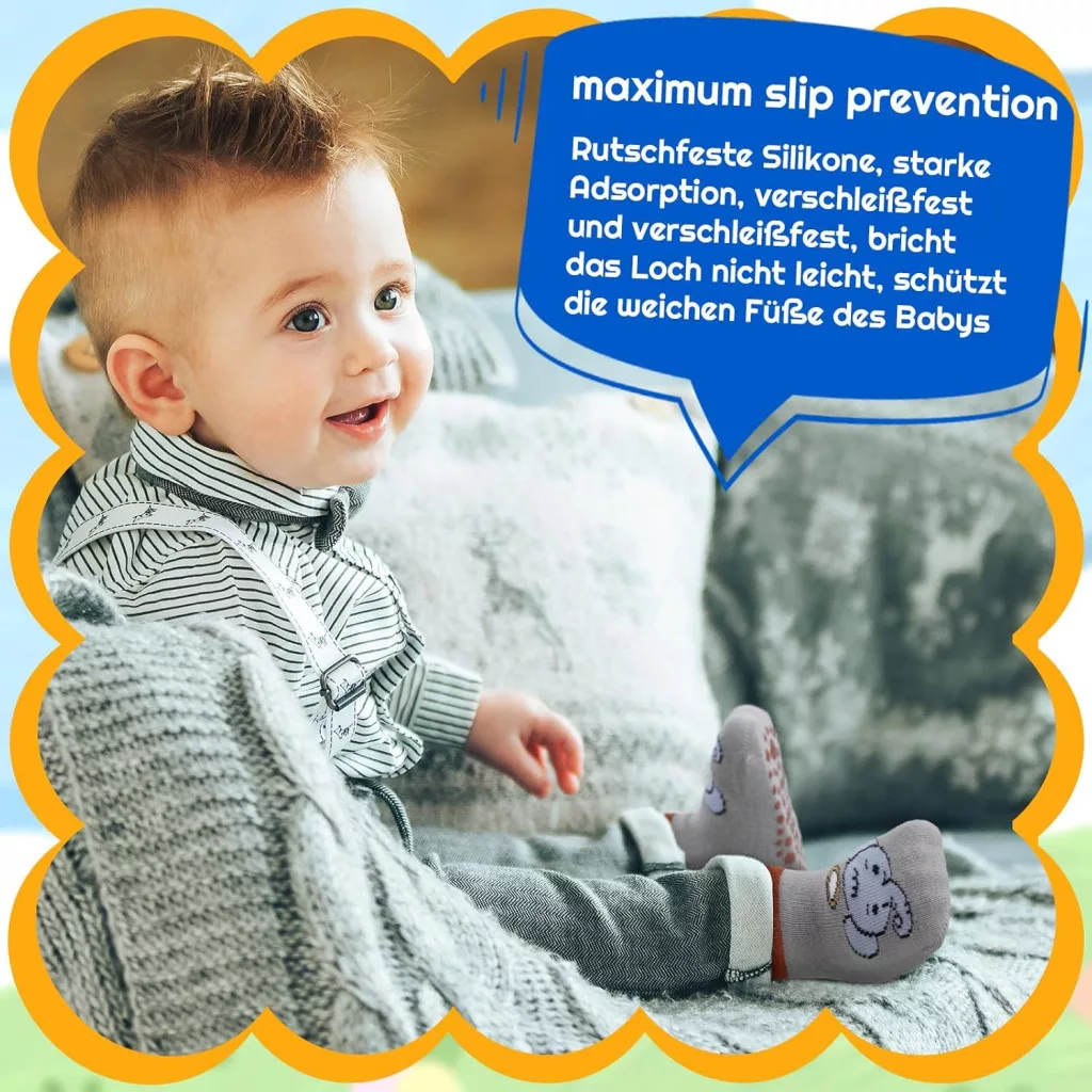 Aceste șosete antiderapante pentru bebeluși, create cu grijă, sunt alegerea ideală pentru fiecare părinte care caută calitate și confort pentru copilul său. Produsul conține cinci perechi de șosete frumoase, decorate cu motive drăguțe de desene animate, care sunt perfect potrivite atât pentru fetițe, cât și pentru băieței. Materialul moale din amestec de bumbac asigură confort maxim și respirabilitate, în timp ce talpa antiderapantă ajută la prevenirea accidentelor. Aceste șosete sunt ideale pentru toate anotimpurile, fie vară, fie iarnă, și pot fi un cadou perfect pentru zile de naștere sau alte sărbători.