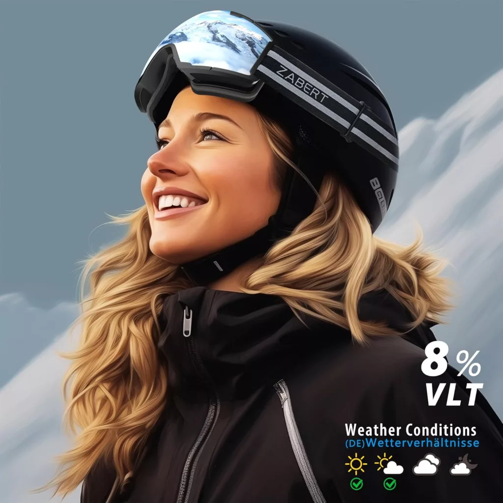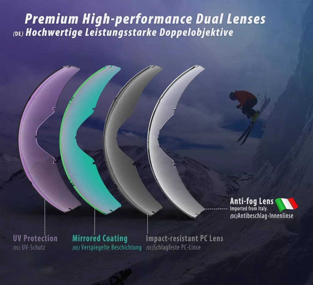 ZABERT Ochelari de schi pentru adulți și copii, peste ochelari, protecție UV, anti-ceață