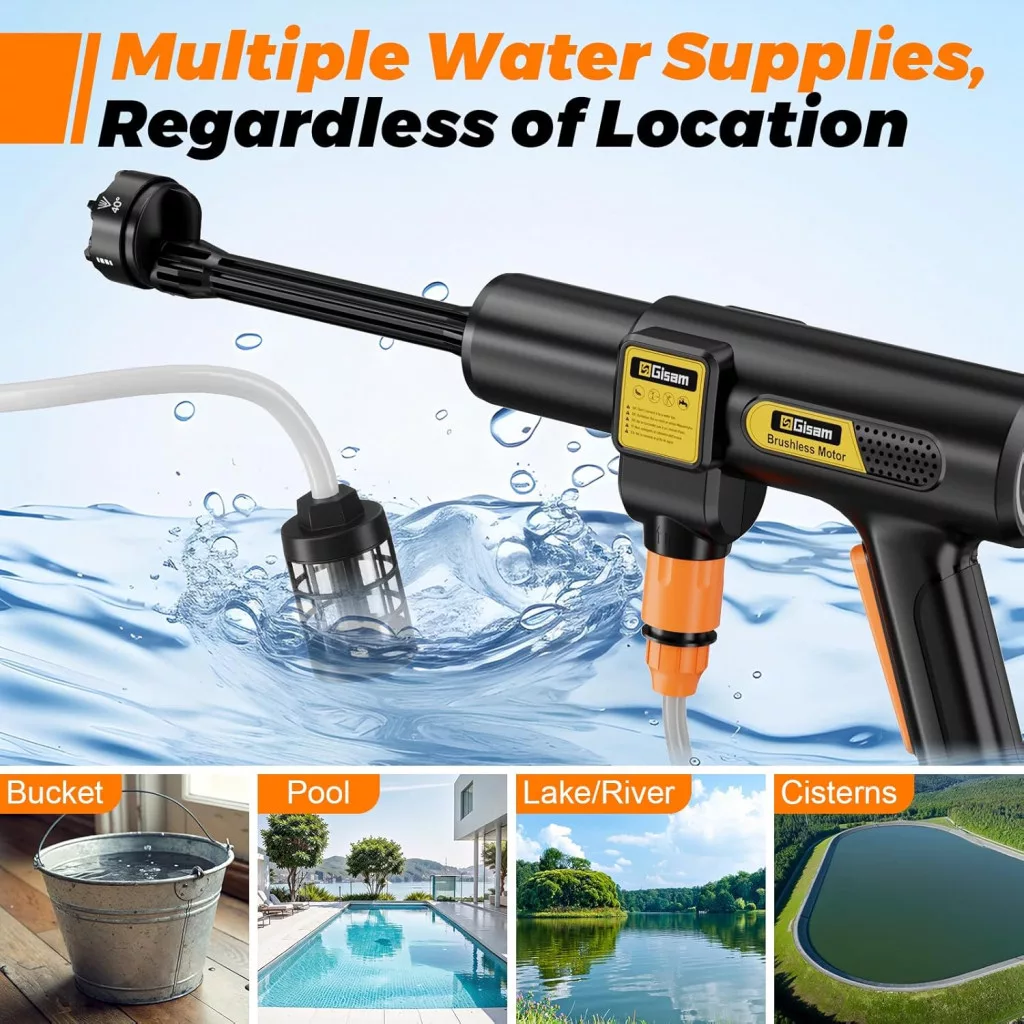 Gisam Akkumulátoros Magasnyomású Mosó 943 PSI - Sokoldalú Tisztítás és Öntözés