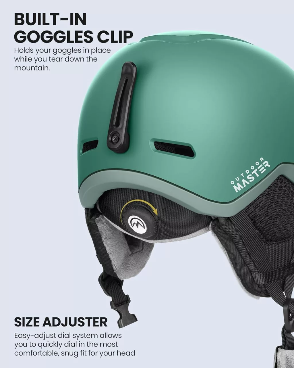 Casca de schi OutdoorMaster MIPS este disponibilă în mărimea S, care este recomandată pentru circumferința capului de 54-58 cm. Casca are un suport integrat pentru banda de prindere a ochelarilor de schi, care permite fixarea ochelarilor de schi direct pe cască, asigurând astfel o potrivire și un confort optim.