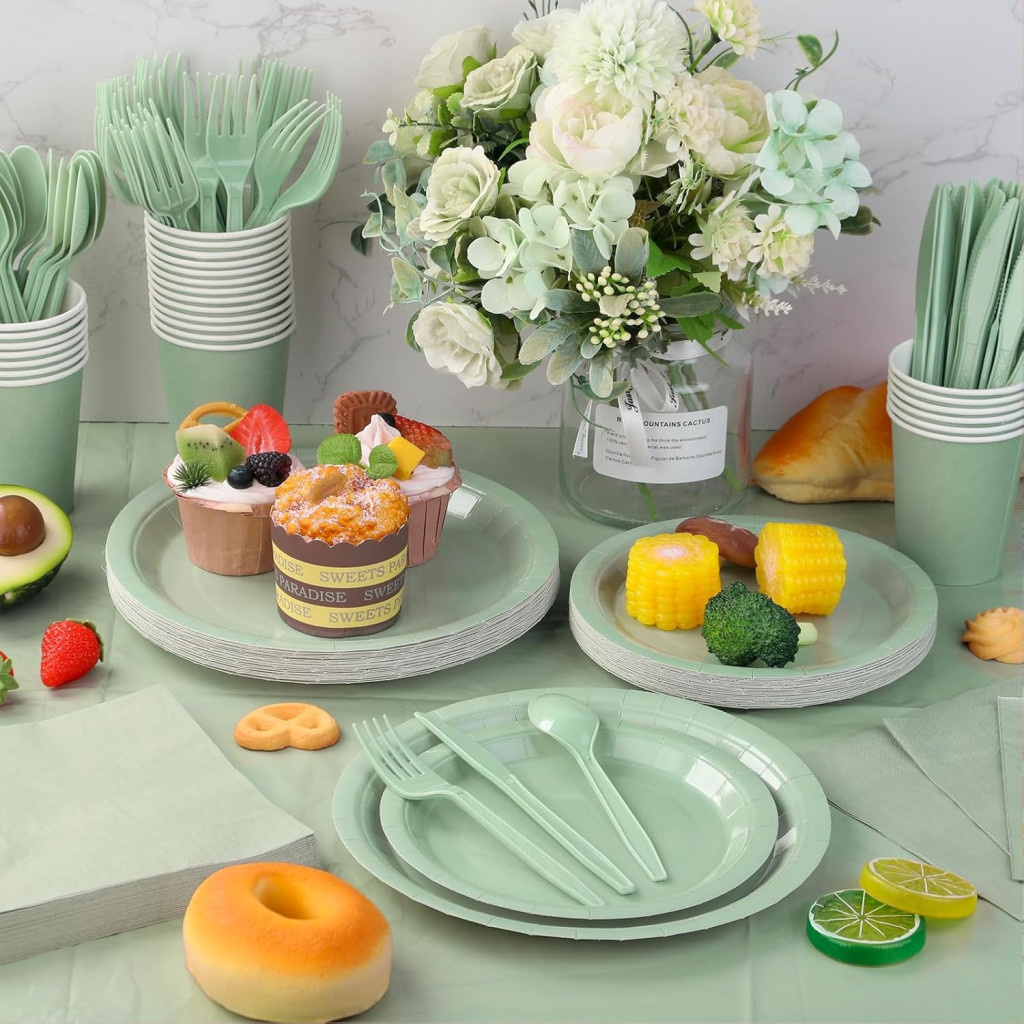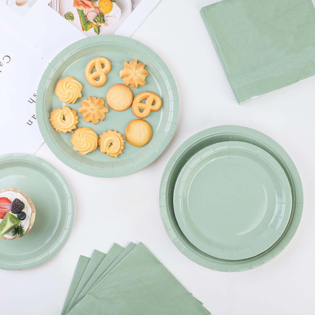 Farfuriile de hârtie sunt potrivite atât pentru evenimente interioare, cât și pentru cele exterioare. Le puteți folosi pentru prăjituri, torturi, gustări și mese ușoare. Structura puternică a hârtiei asigură că farfuriile nu se rup chiar dacă puneți alimente umede pe ele. Culoarea verde-oliv se integrează armonios cu orice decor, fie că este vorba de un eveniment modern, clasic sau în stil rustic.
