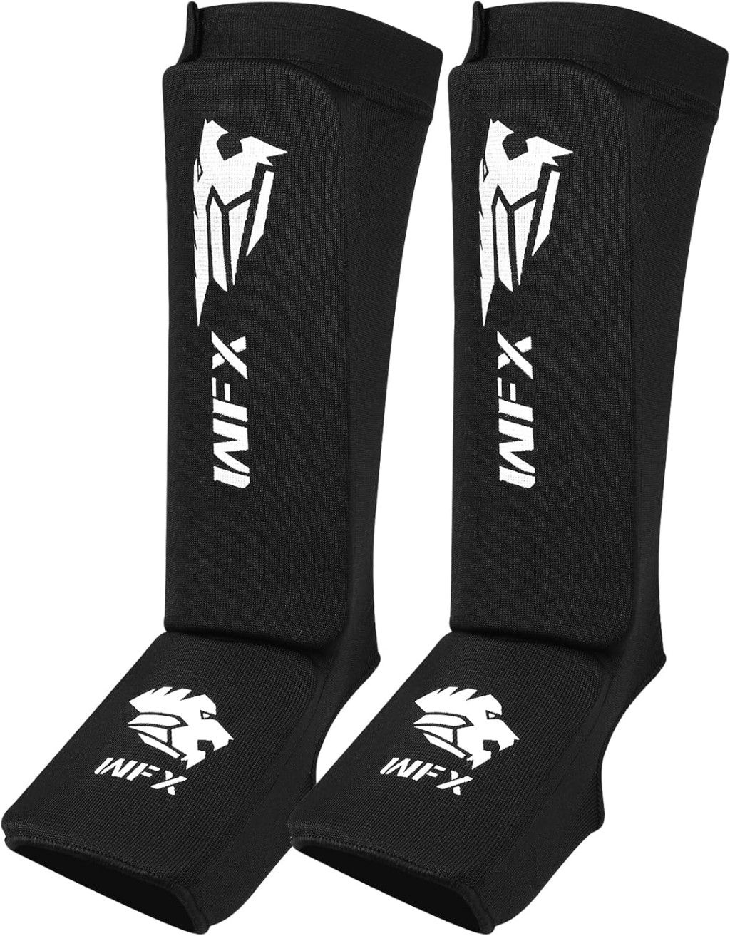 Protecții tibiale WFX pentru kickbox și antrenamente MMA - Protecții gleznă negre pentru sporturi de contact Muay Thai, Karate, Taekwondo - Mărimea S, elastice, cu burete