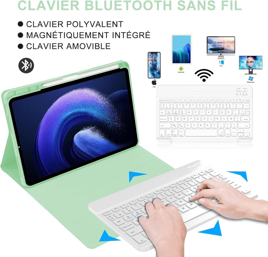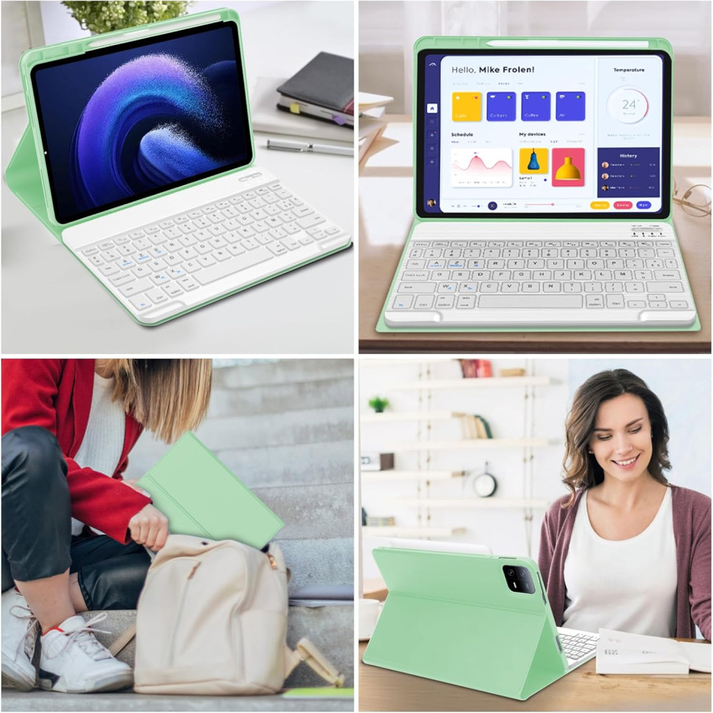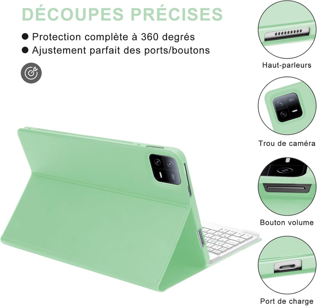 Husa cu tastatură JADEMALL este o soluție concepută special pentru modelele Xiaomi Pad 6 și Pad 6 Pro de 11 inch, care oferă o experiență de scriere similară cu cea a unui laptop. Combinația dintre culoarea elegantă verde deschis și materialul premium din piele PU asigură un aspect profesional, în timp ce tastatura magnetică AZERTY încorporată este gata de utilizare imediat. Această configurație este alegerea ideală pentru cei care doresc să combine mobilitatea și productivitatea.
