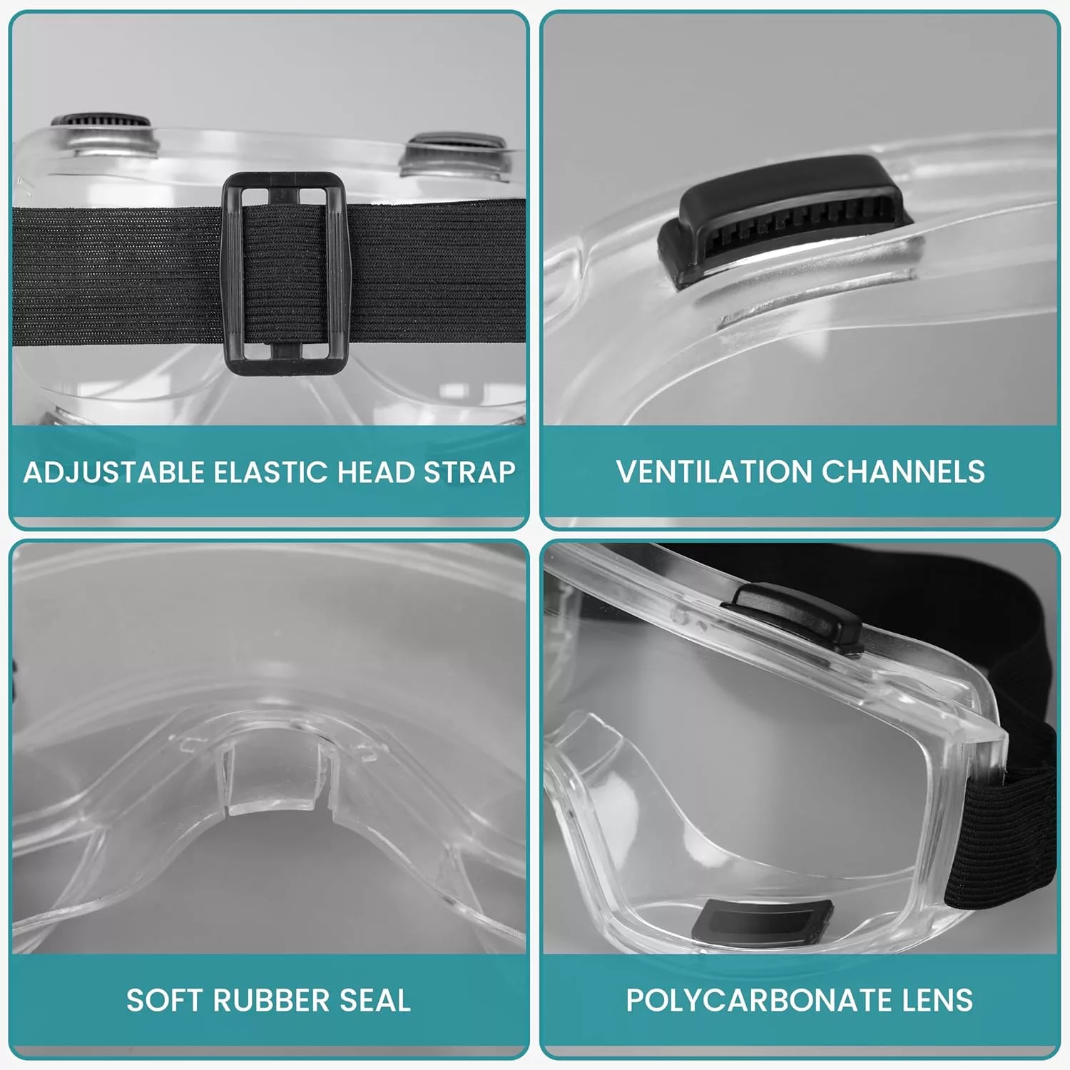 - Design ventilat: Permite circulația aerului, protejând în același timp ochii împotriva stropilor chimici