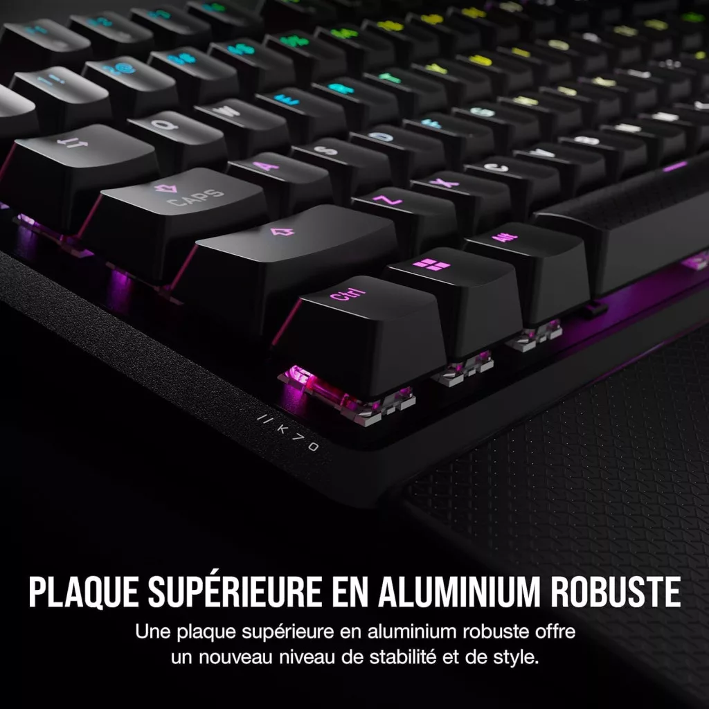 A Corsair K70 Core RGB mechanikus gaming billentyűzet egy kiváló választás azok számára, akik professzionális minőségű billentyűzetet keresnek versenyképes áron. Az előlubrifikált MLX Red lineáris kapcsolók sima és csendes billentyűleütést biztosítanak, míg a kétréteges hangcsillapítás még tovább csökkenti a zajt. Az alumínium felső lemez és a mágneses csuklótámasz prémium érzést kölcsönöznek a billentyűzetnek. Az iCUE szoftver teljes testreszabhatóságot biztosít, és a 5 profil tárolása nagyon praktikus. Az AZERTY FR elrendezés ideális a francia nyelvű felhasználók számára. Összességében ez egy kiváló billentyűzet, amely hosszú évekig megbízható teljesítményt nyújt.