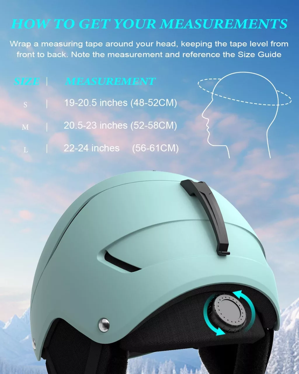 Cască de schi RIOROO pentru bărbați, femei și adolescenți - Mărime ajustabilă, căptușeală călduroasă, sistem de ventilație, compatibilă cu ochelari de schi, protecție pentru cap
