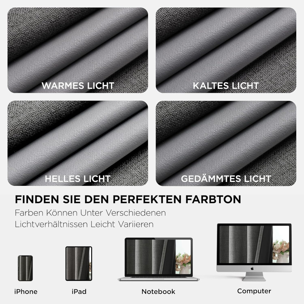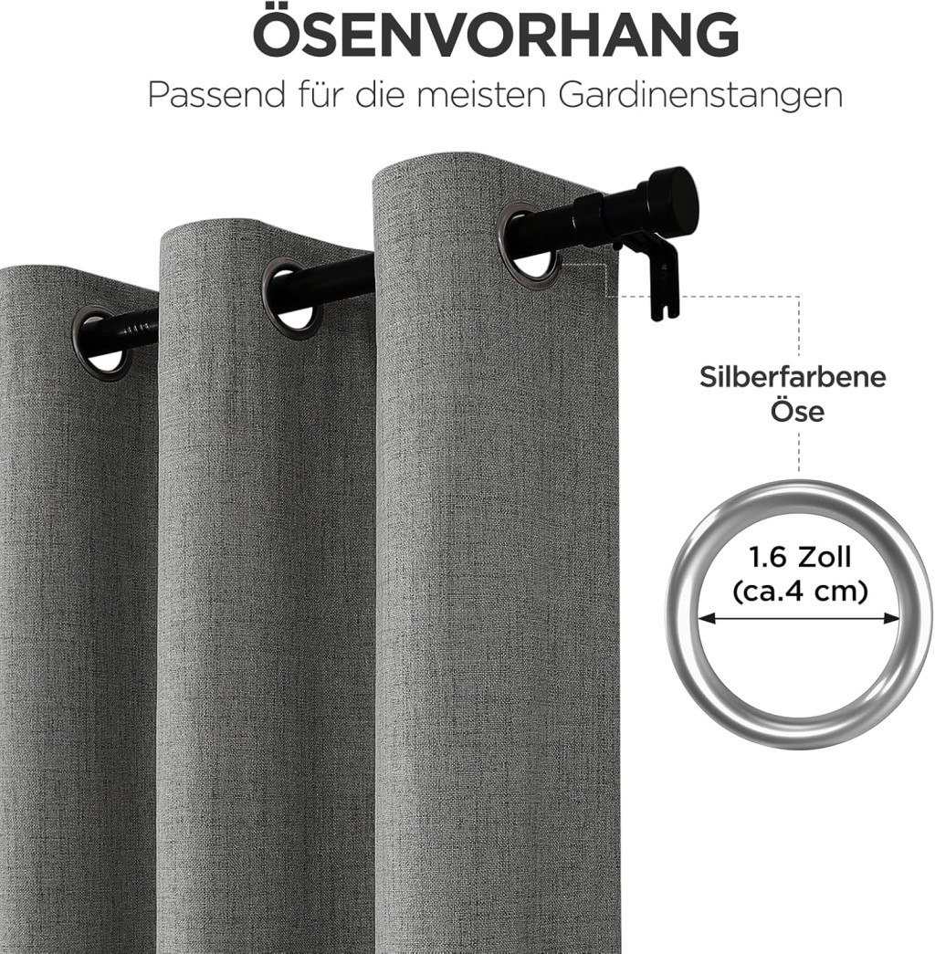 Joydeco Perdele Opace cu Inele - Efect de In Gri, Termoizolante, Set de Două, cu Strat pe Spate - Perdele Blackout pentru Reducerea Zgomotului, pentru Living,