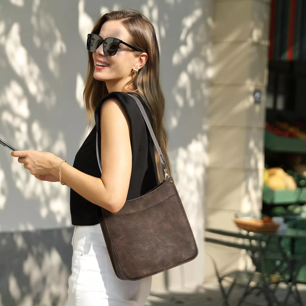 CLUCI Geantă de umăr pentru femei, din piele PU, geantă crossbody medie cu portofel, set de 2 piese cu bretele interschimbabile, culoare cafea.