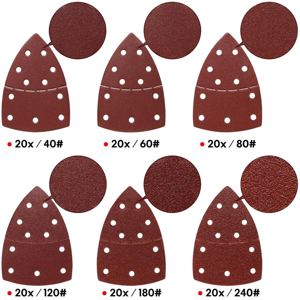 SHALL 120 darabos csiszolópapír szett háromszög csiszolópadok 40-240 szemcseméret