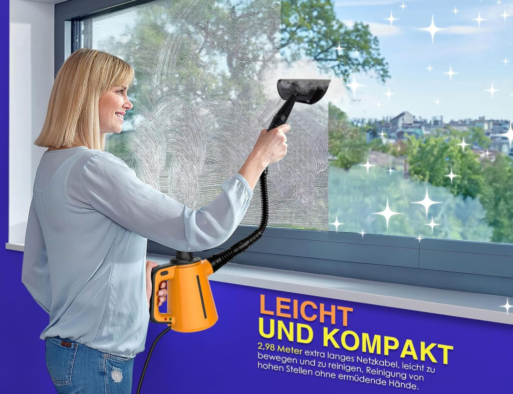 A gőztisztító egy sokoldalú és hatékony megoldás a ház minden sarkának tisztítására. Ez a professzionális handheld gőztisztító 1300W teljesítménnyel és 3,5 bar gőznyomással rendelkezik, amely 99,9%-ban eltávolítja a szennyeződéseket és zsírlerakódásokat. Mindössze 3 perc alatt felmelegszik 110°C-ra, így azonnal használható. A 380 ml-es víztartály elegendő egy teljes takarítási munkamenethez, és csak tiszta vízzel működik – teljesen természetes és biztonságos megoldás a gyermekek és háziállatok számára.