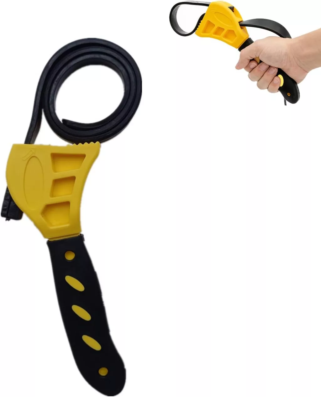 Această cheie filtru ulei de calitate profesională este o unealtă versatilă, ideală pentru instalatori, mecanici auto și meseriași casnici. Designul reglabil al curelei de cauciuc permite lucrul cu obiecte de diferite dimensiuni și forme, fără a zgâria suprafața acestora. Designul în culorile galben și negru nu este doar practic, ci și ușor de observat în trusa de scule sau la locul de muncă.