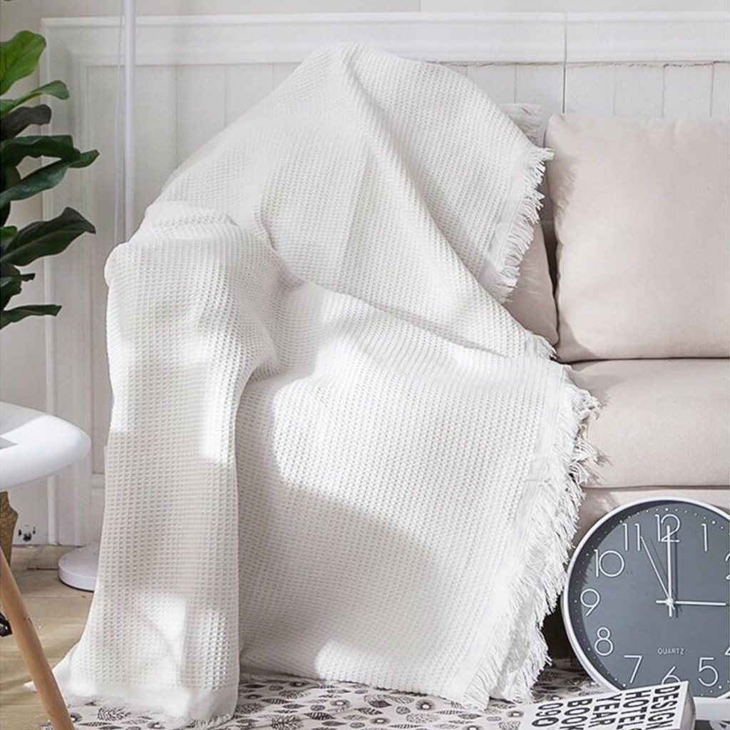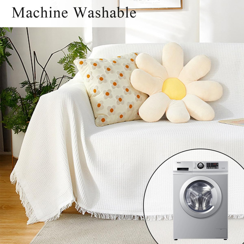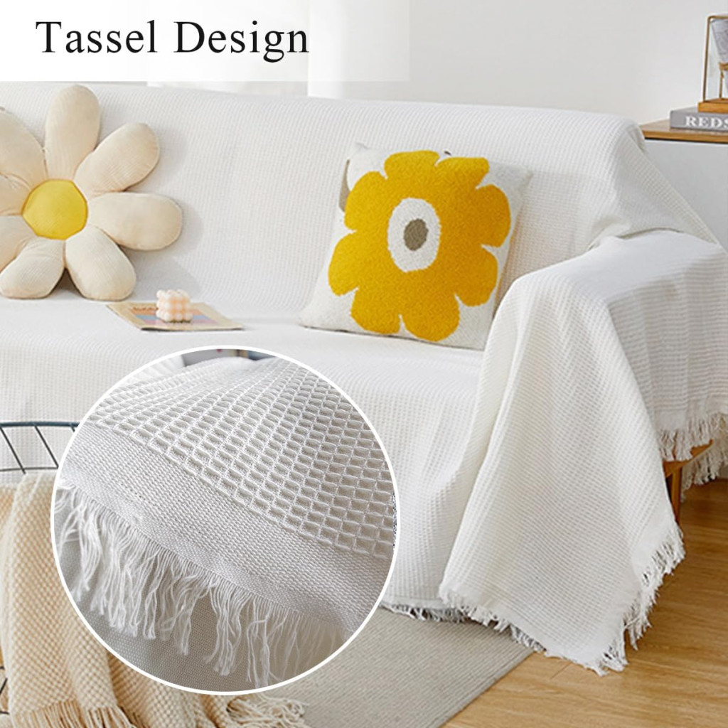 Husă de canapea din bumbac HAMON, 130x180cm, Albă, Lavabilă, Plaid de o persoană, Pentru copii și animale de companie