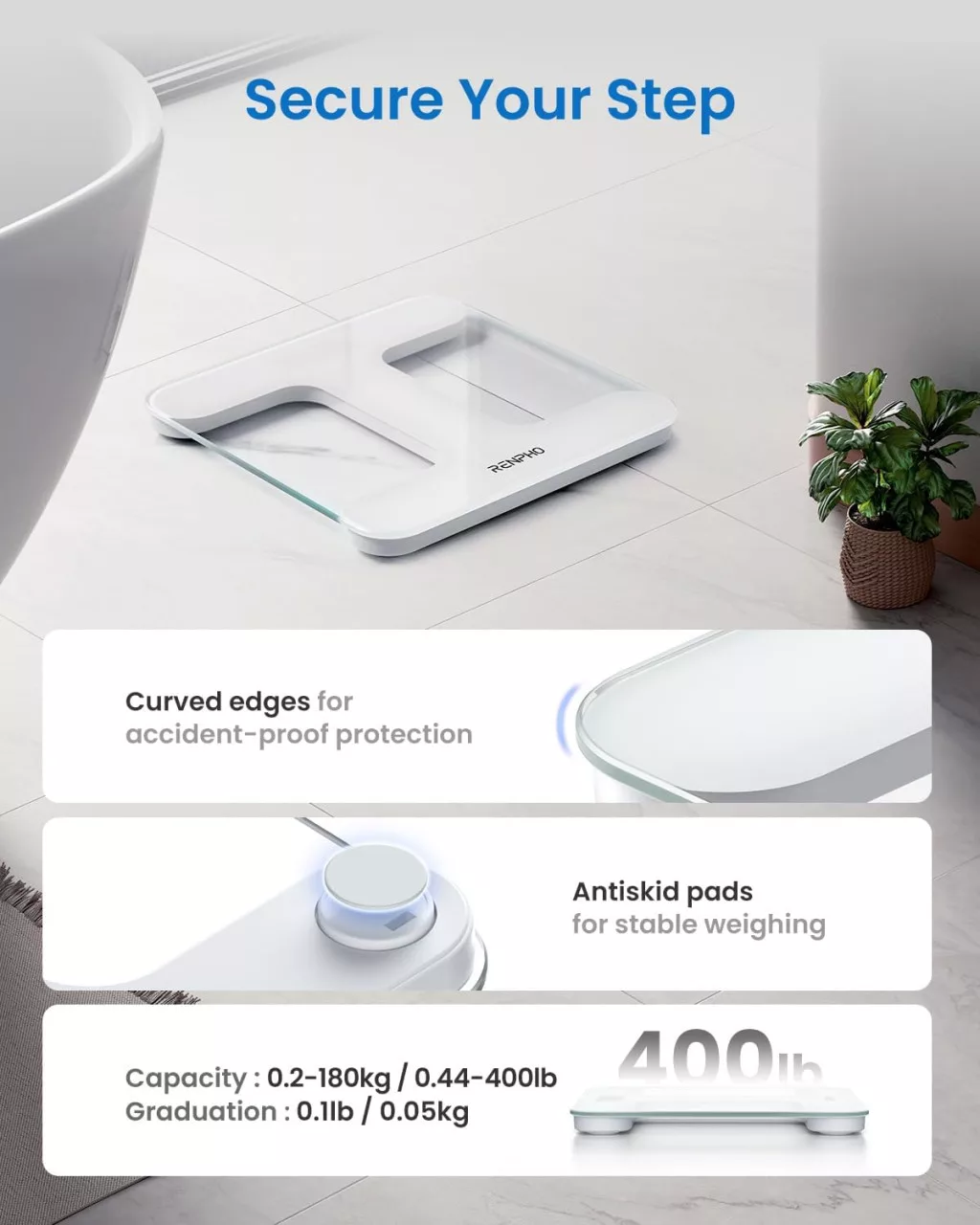 Cântarul digital de persoane RENPHO este conceput pentru măsurători precise și o durată lungă de viață a bateriei: