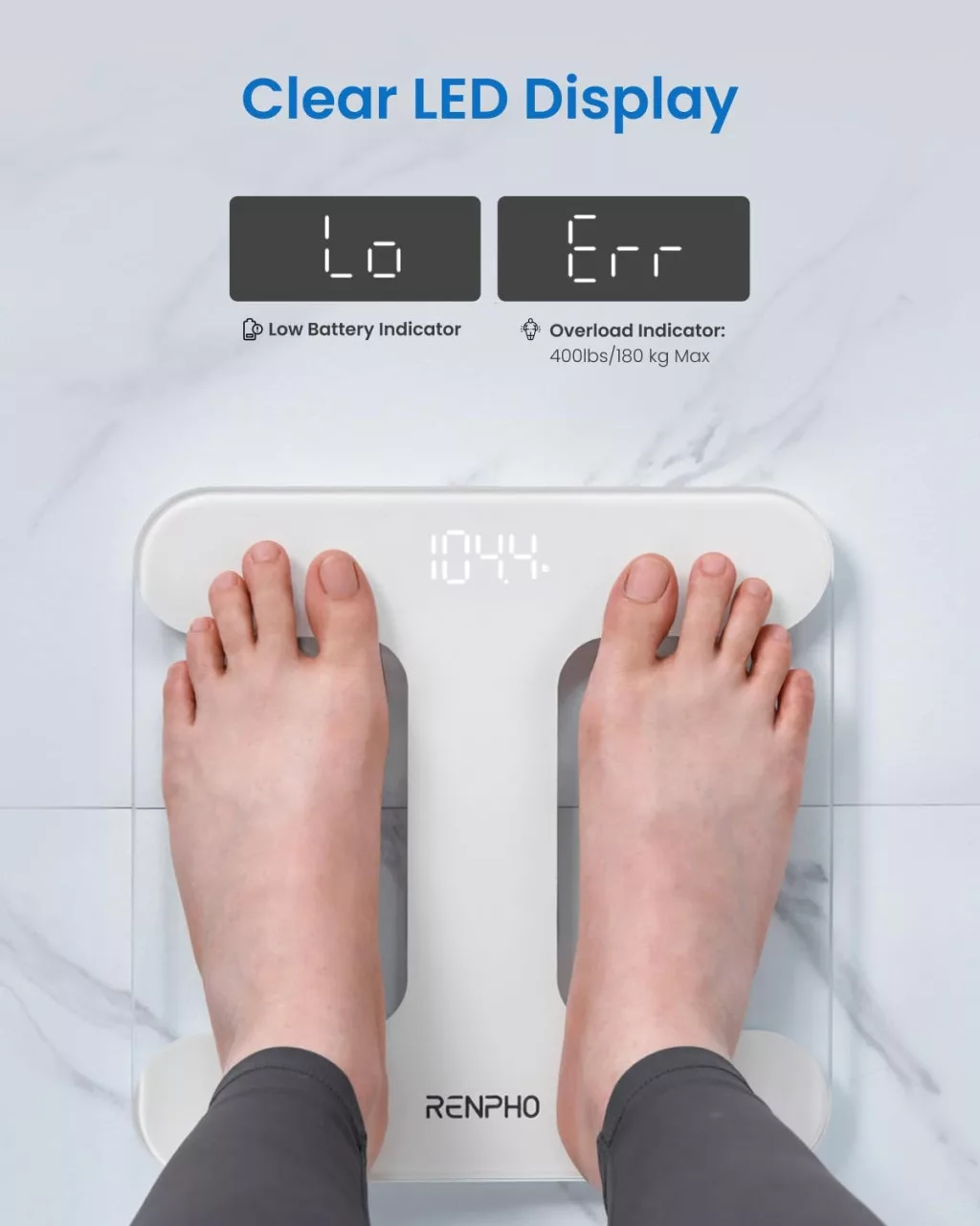 Cântar Digital de Baie RENPHO cu Afișaj LED, Capacitate 180 kg, cu Baterii incluse