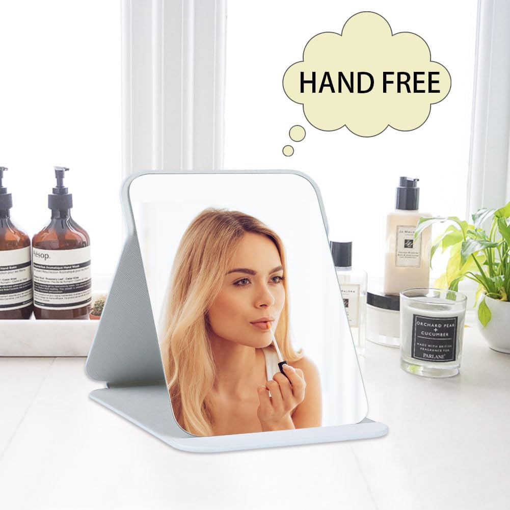 Suprafața mare a oglinzii HD asigură că puteți vedea bine fiecare detaliu, în timp ce unghiul reglabil și construcția pliabilă oferă confort maxim. Husa elegantă din piele PU nu numai că protejează oglinda, ci îi oferă și un aspect premium.
