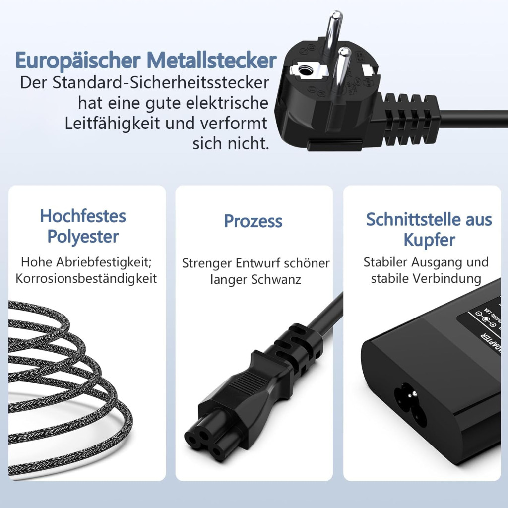 Firul de cupru de înaltă calitate și carcasa din plastic ignifug asigură o durată lungă de viață și o utilizare sigură. Adaptorul deține certificatele CE, FCC și RoHS, care garantează respectarea standardelor internaționale de siguranță.