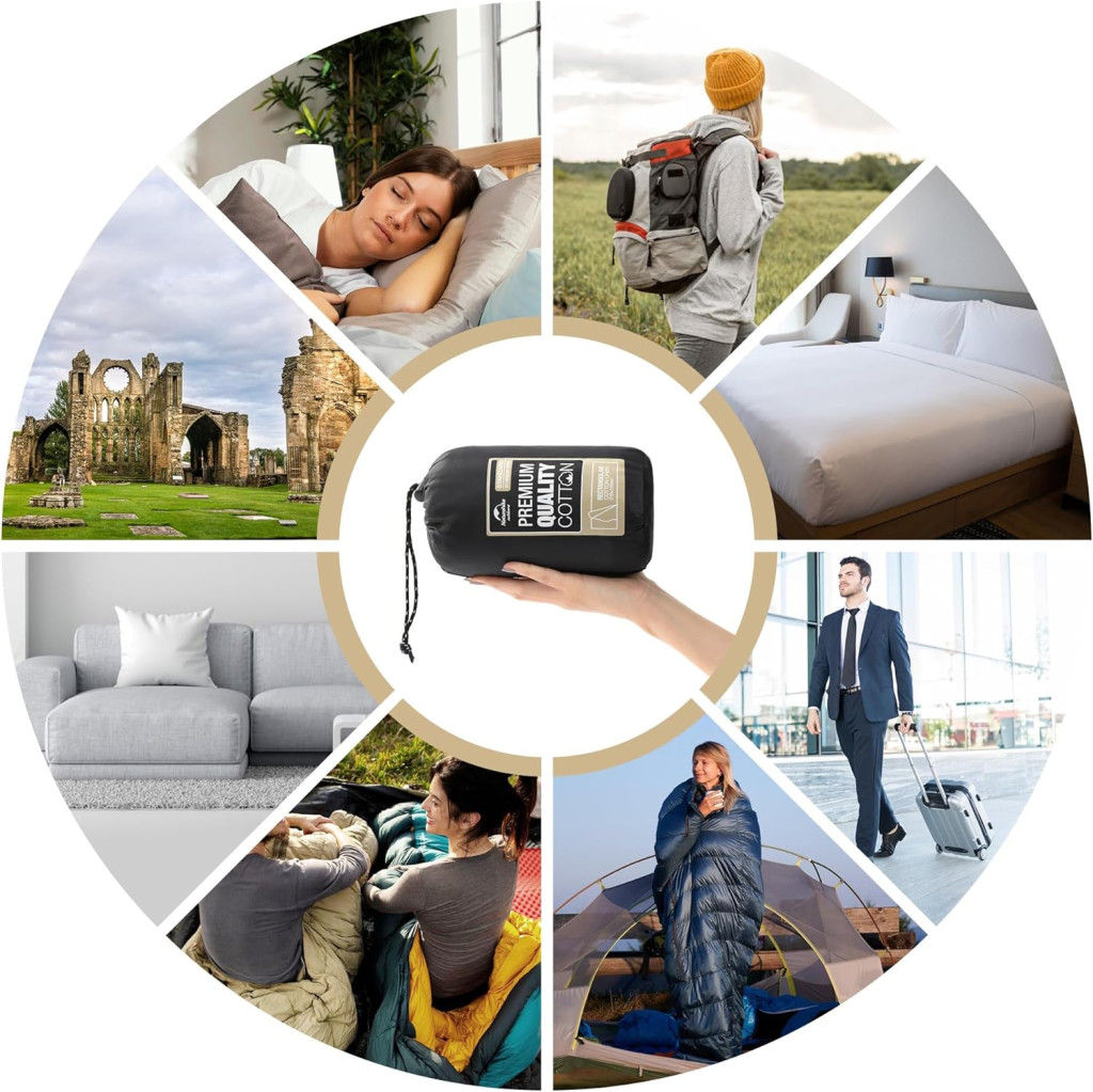 Acest cearșaf de sac de dormit versatil își dovedește valoarea în multe situații. În timpul drumețiilor de vară, poate fi folosit singur ca sac de dormit, atunci când temperatura nu necesită încălzire suplimentară. Backpackerii apreciază în special greutatea sa redusă și dimensiunile compacte, care nu împovărează rucsacul.