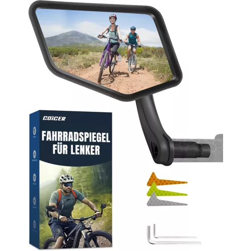 Oglinda retrovizoare pentru bicicletă COICER este un accesoriu fiabil, de calitate profesională, recomandat oricărui biciclist. Oglinda convexă HD, designul cu rotire 360° și compatibilitatea universală fac din acest produs o alegere ideală pentru biciclete electrice, biciclete obișnuite și alte vehicule. Instalarea ușoară, autocolantele reflectorizante și garanția de 2 ani aduc un plus de valoare acestui produs excelent.