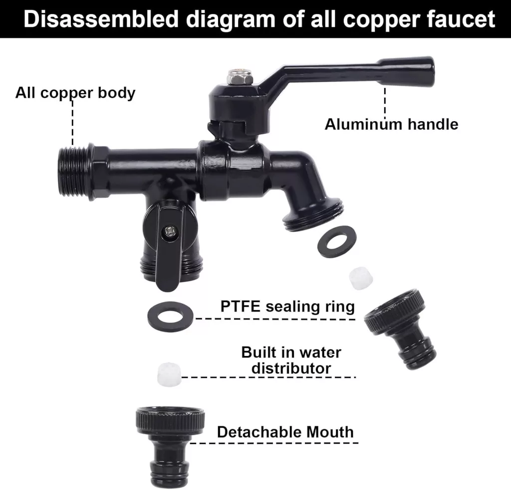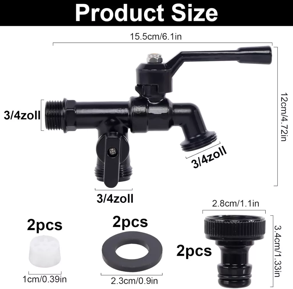 Cele două ieșiri separate de 3/4 inch vă permit să conectați două dispozitive diferite în același timp, fie că este vorba de un sistem de irigare a grădinii, o mașină de spălat, un echipament de spălare auto sau un rezervor colector de apă pluvială. Acest design practic economisește timp și energie, oferind în același timp flexibilitate maximă în utilizarea de zi cu zi.
