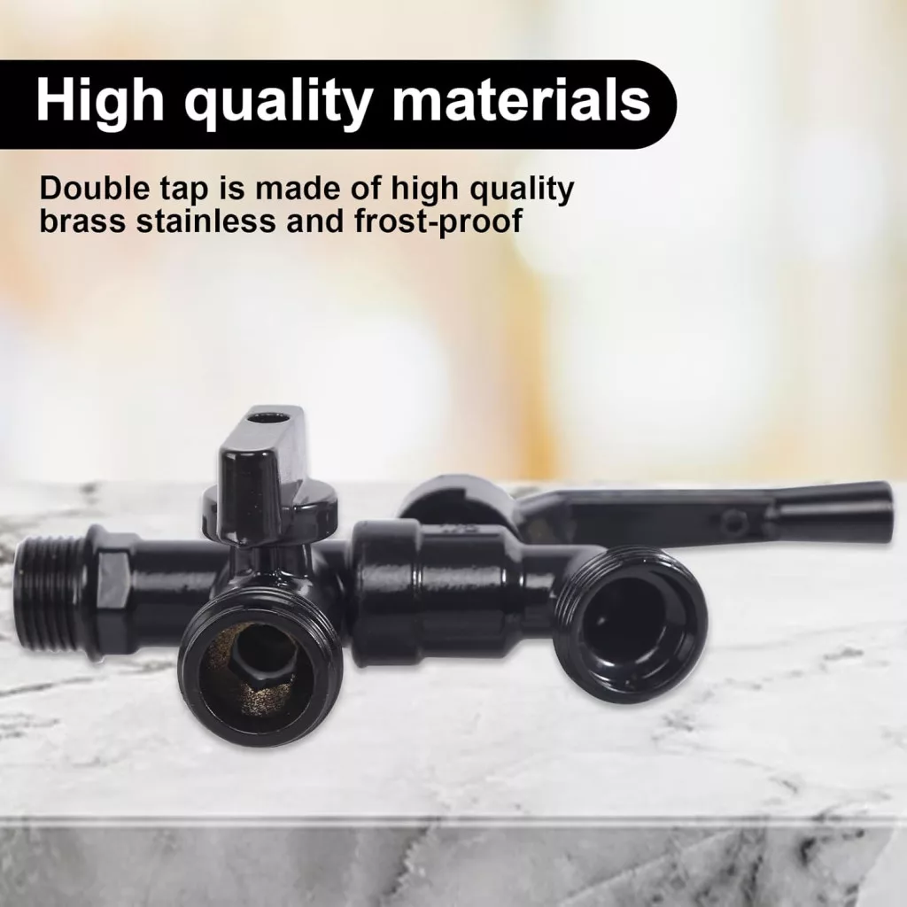 Robinet de grădină anti-îngheț FASBET 3/4" - Robinet exterior dublu din alamă, cu strat negru - Pentru mașină de spălat, container IBC, irigații