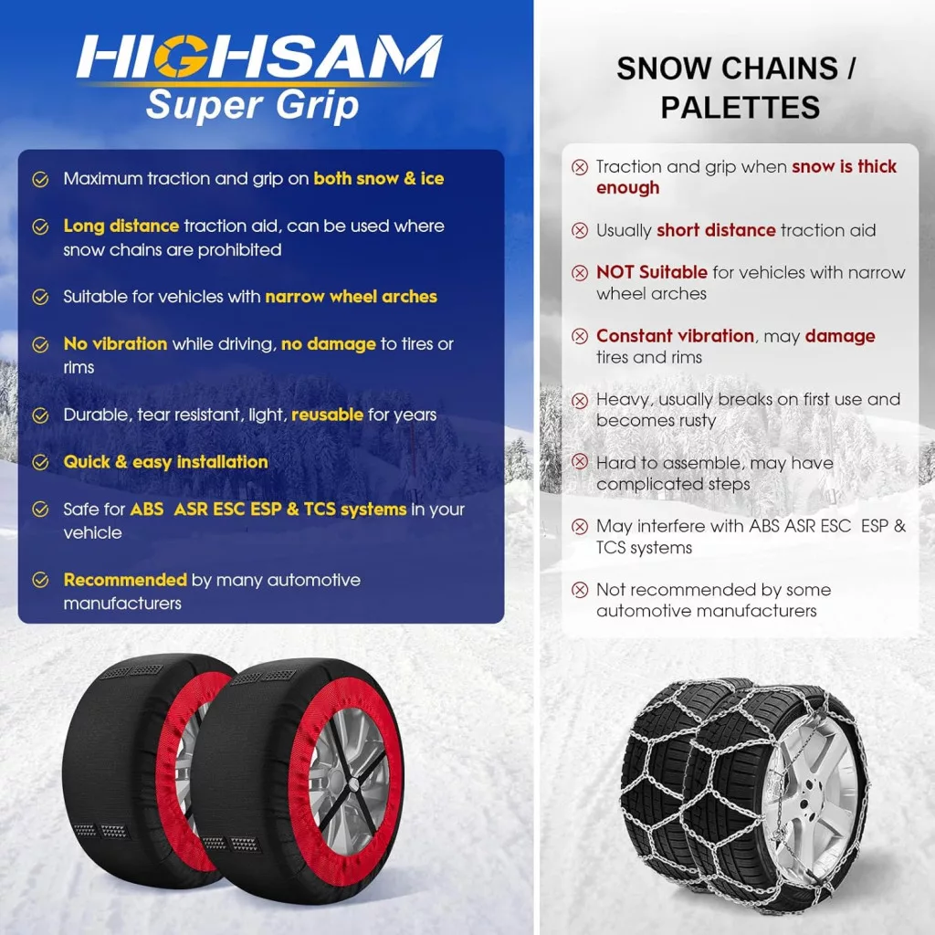 Șosete de zăpadă highsam Super Grip - Lanț Textil pentru Zăpadă pentru Mașini, cu Certificare EN 16662-1