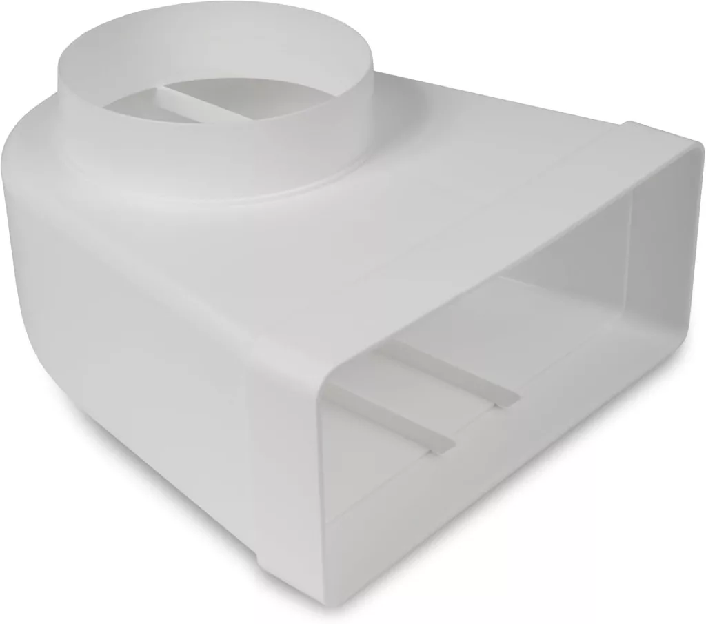 Acest racord de conductă profesional de 90° este un element indispensabil al sistemelor moderne de ventilație. Asigură tranziția de la o conexiune rectangulară de 220x90mm la o conductă circulară cu diametrul de 125mm, oferind o soluție perfectă pentru nevoile de ventilație ale băilor, bucătăriilor, garajelor și a altor spații. Fabricat din plastic ABS durabil de culoare albă, acest adaptor nu este doar funcțional, ci și estetic în orice mediu.