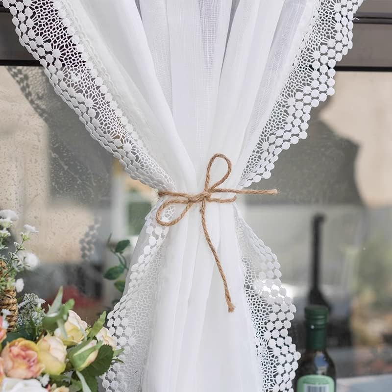 Perdea vitraj albă din dantelă Yaland, aspect in, 80x100cm, pentru bucătărie sau sufragerie