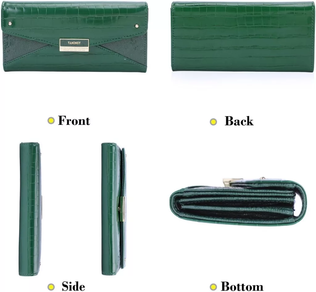 • Model elegant de piele de crocodil: Textură specială, de culoare verde, care evidențiază caracterul luxos al portofelului