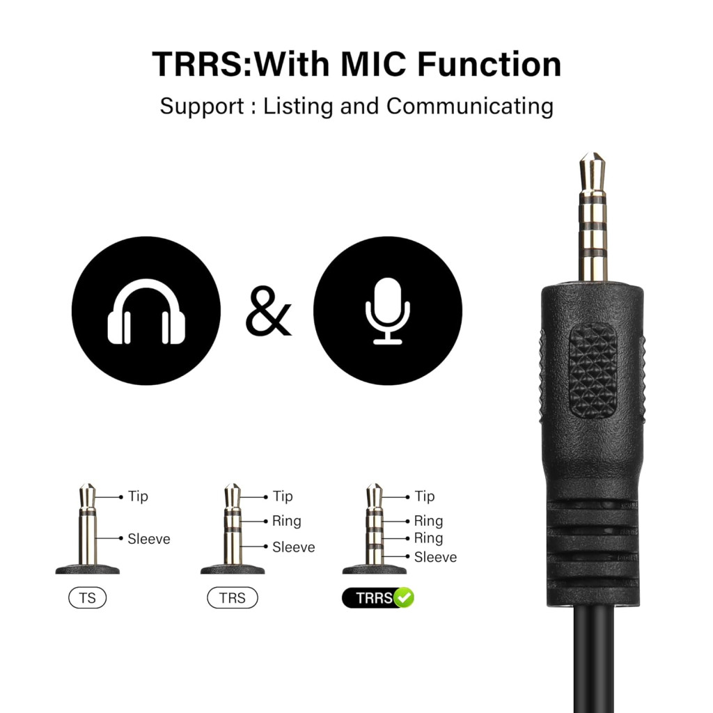 Designul TRRS (Tip-Ring-Ring-Sleeve) asigură faptul că cablul acceptă atât funcțiile de difuzor/căști, cât și de microfon, ceea ce îl face o alegere perfectă și pentru dispozitivele care necesită un set de căști cu microfon.