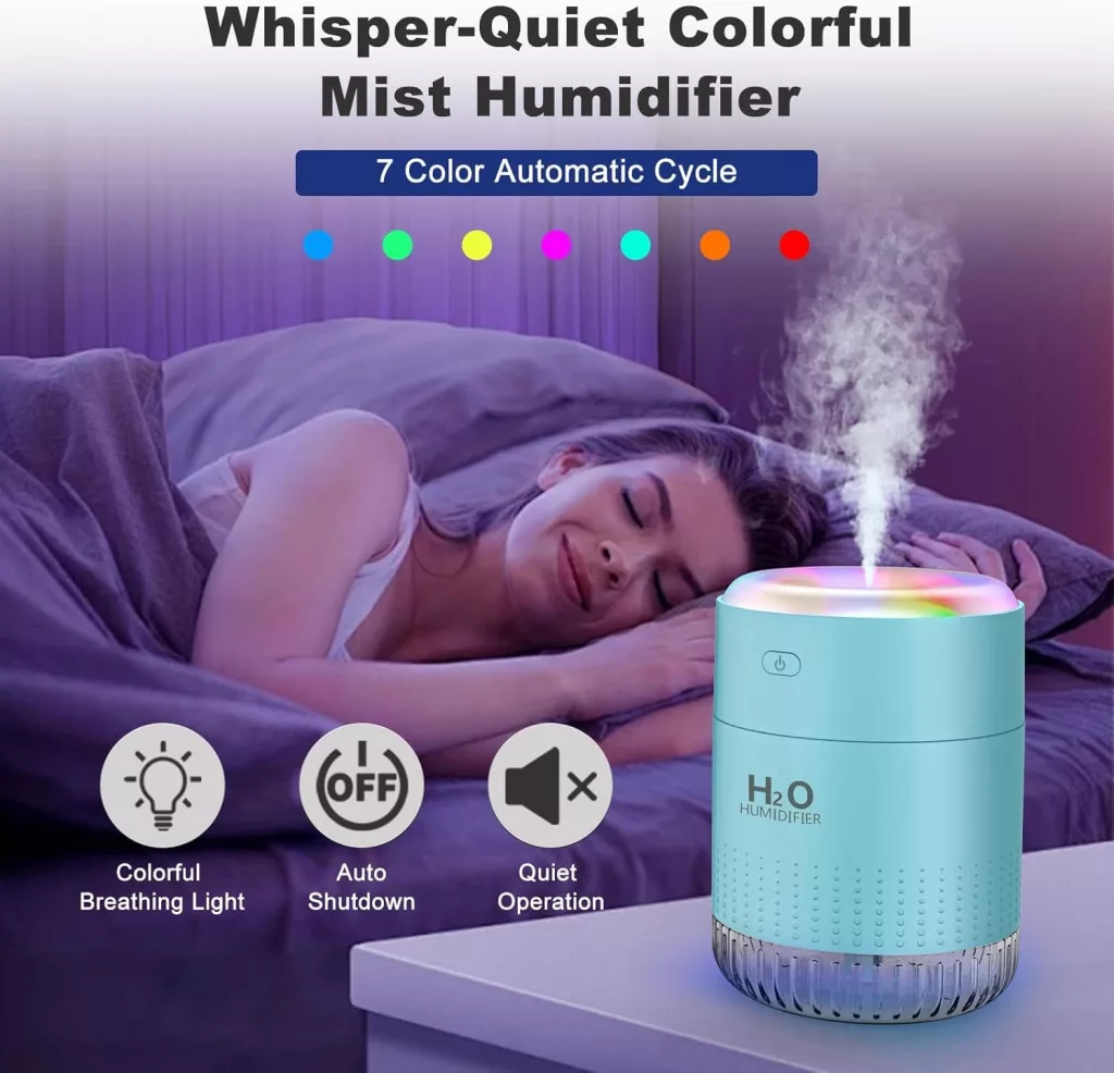 Umidificator KARFUN pentru dormitor - 350 ml, mini umidificator silențios cu 7 lumini colorate