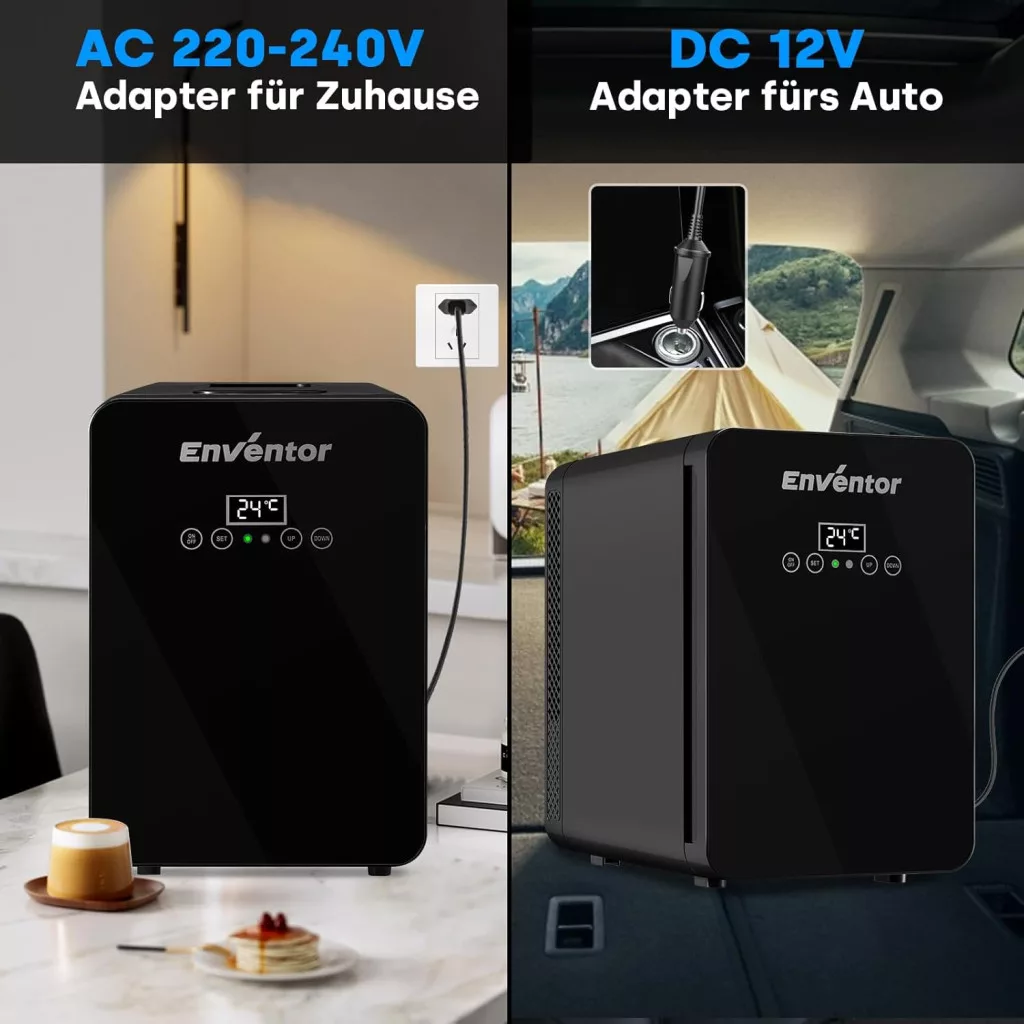 Mini frigider Enventor de 10 litri cu ecran LCD, funcție de încălzire/răcire, pentru mașină și birou