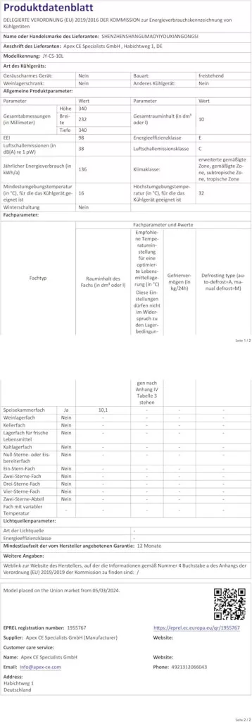 Model: JY-CS-10L