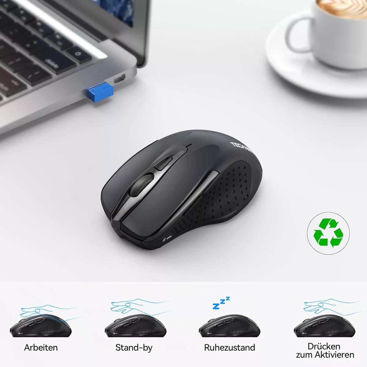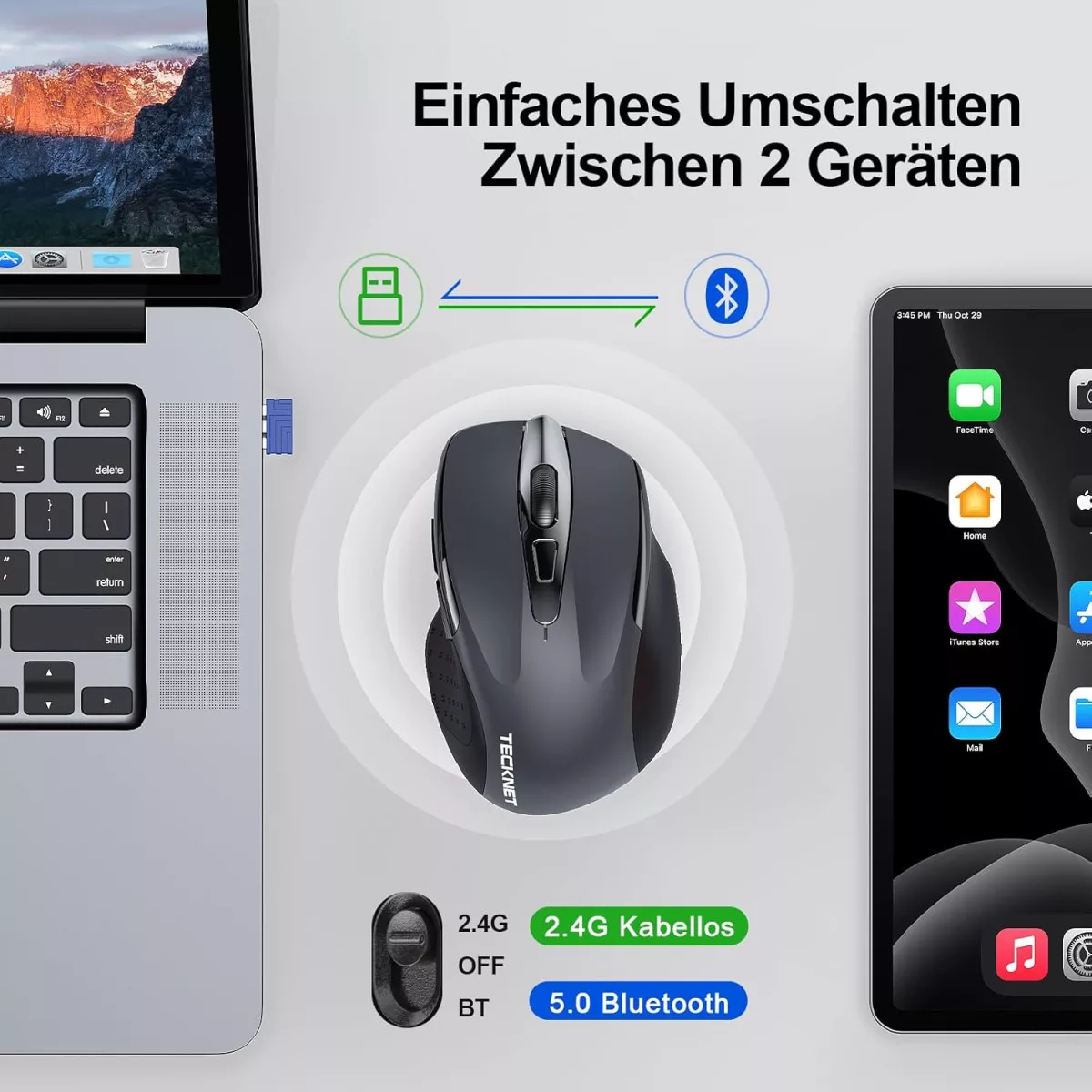 Mouse-ul Bluetooth TECKNET este o alegere excelentă pentru cei care caută un mouse wireless fiabil și durabil. Cele trei moduri de conectare asigură că este compatibil cu orice dispozitiv, fie că este laptop, computer desktop, tabletă sau smartphone. Designul ergonomic și funcționarea silențioasă îl fac ideal pentru utilizarea la birou și acasă.