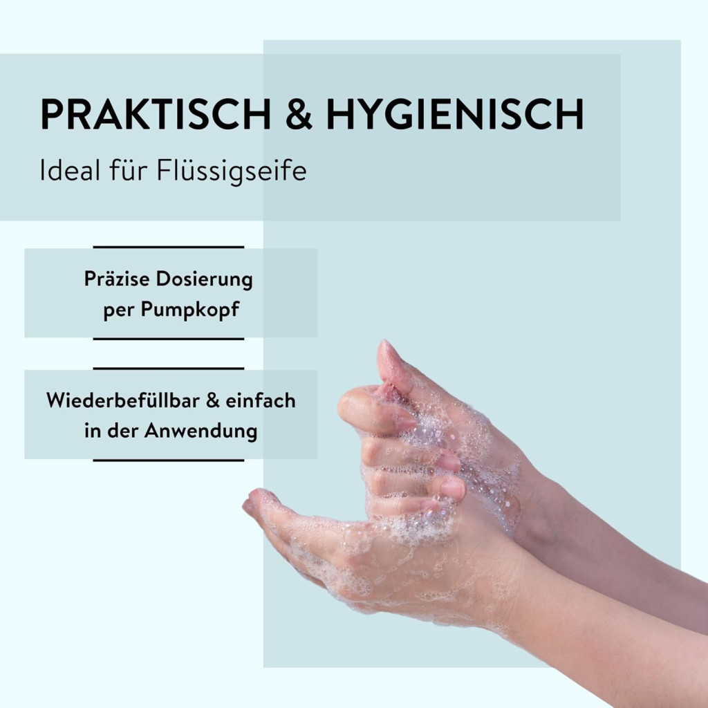 Mecanismul de pompare reîncărcabil vă permite să utilizați în mod constant săpunul lichid, loțiunea de corp sau detergenții preferați. Această soluție durabilă reduce deșeurile de plastic și este mai economică pe termen lung decât sticlele de unică folosință.