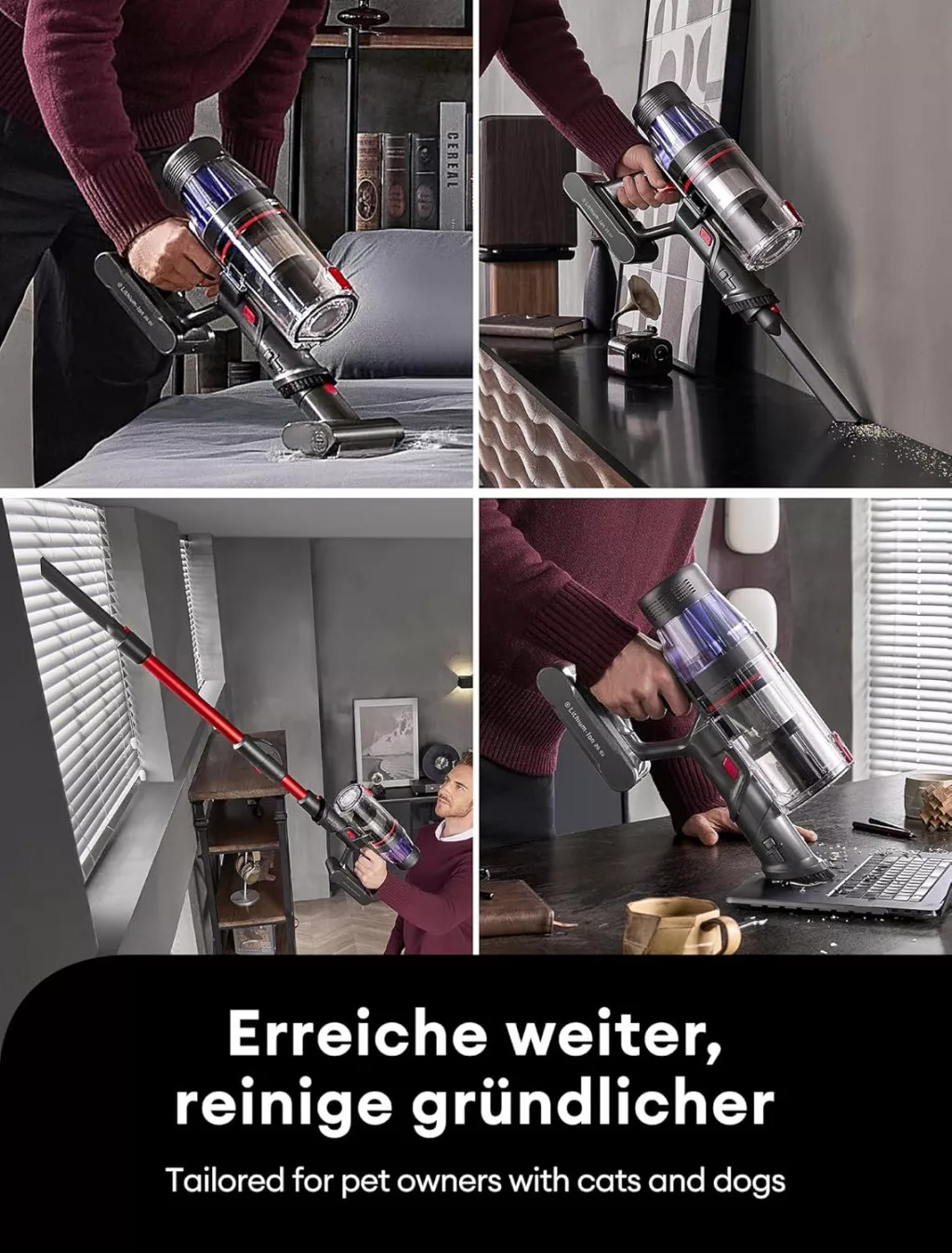 - Nehéz hozzáférésű helyek: A 180° összecsukható fogantyú lehetővé teszi az ágy alatti és kanapé alatti takarítást