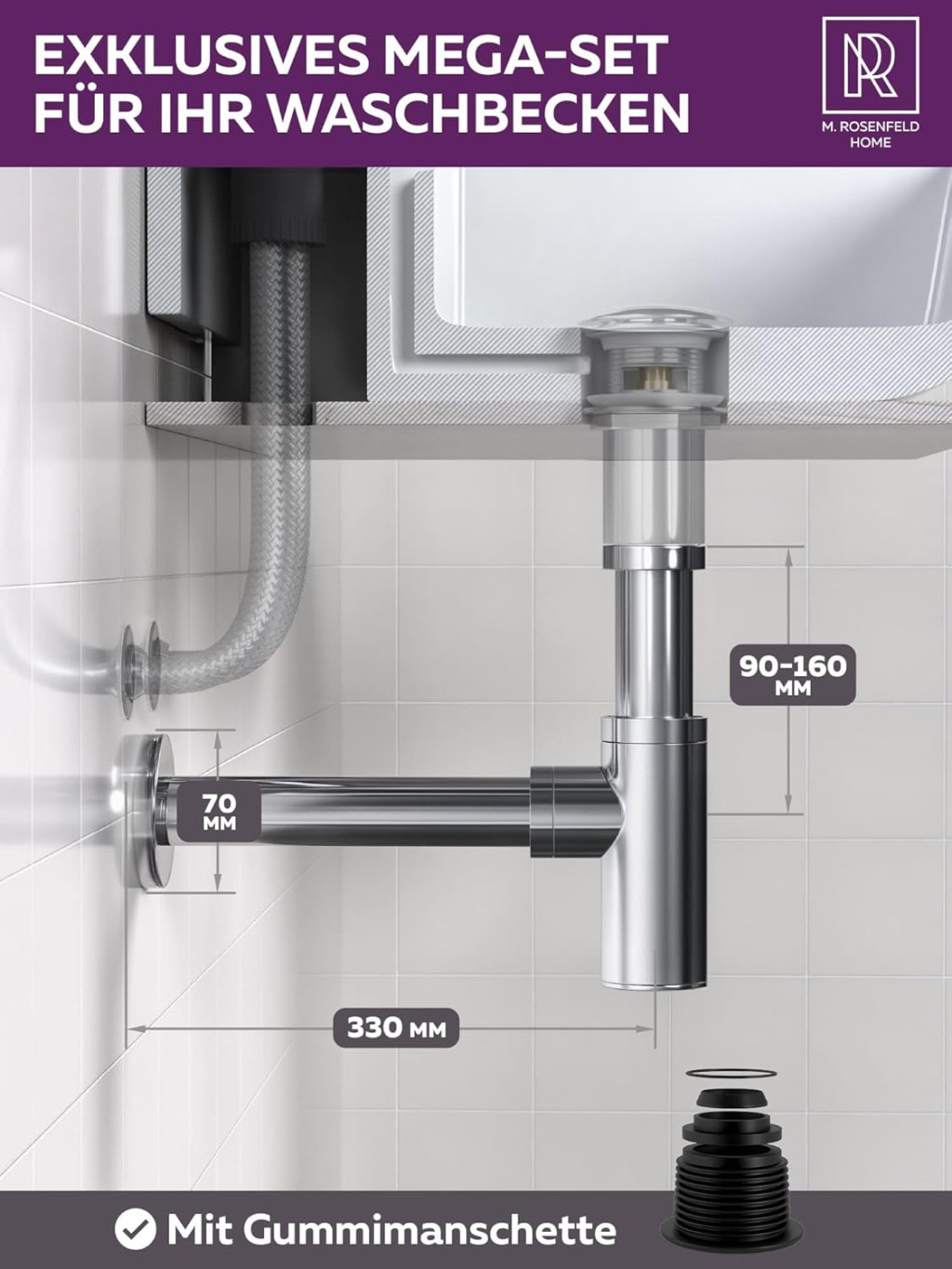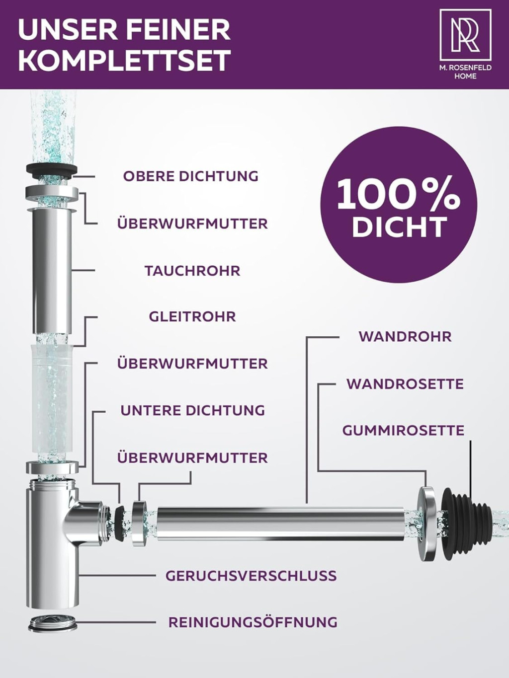 Sifonul chiuvetă M. ROSENFELD HOME este o combinație de design minimalist, calitate germană și întreținere simplă. Acest produs este alegerea perfectă pentru cei care apreciază stilul, fiabilitatea și funcționalitatea. Fie că este vorba de renovarea băii, înlocuirea unui sifon vechi sau de o instalație nouă, acest sifon chiuvetă satisface toate cerințele.