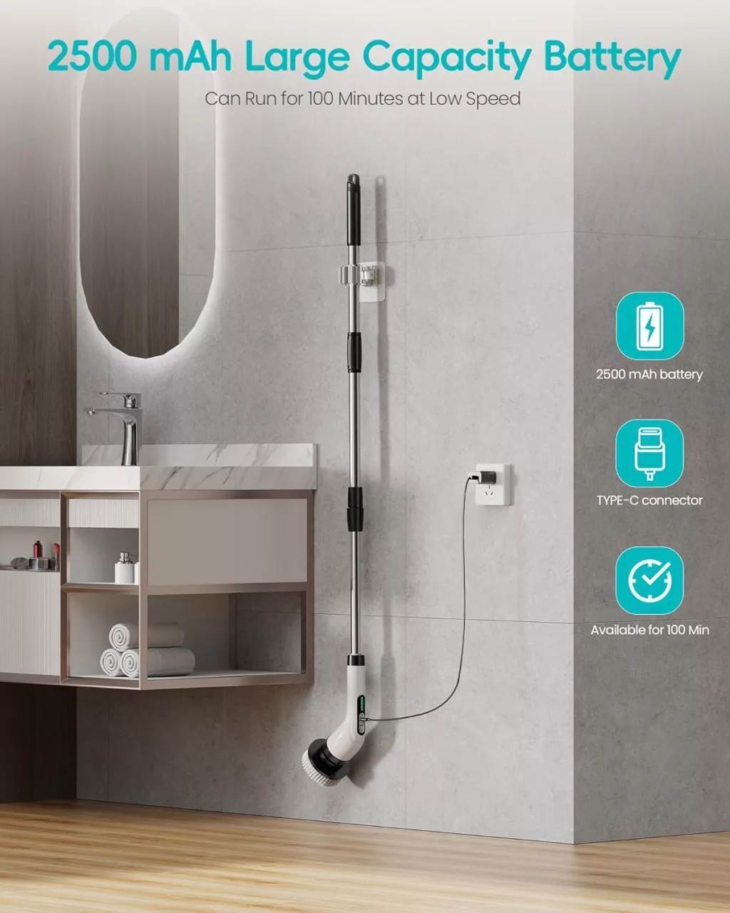 Peria electrică de curățare este o soluție revoluționară pentru gospodăriile moderne. Cu designul său fără fir și motorul puternic, îndepărtează cu ușurință murdăria încăpățânată și depunerile. Fie că trebuie să curățați gresia din baie, căzile, pardoselile sau alte suprafețe, acest instrument versatil este capabil să facă față oricărei sarcini. Mânerul lung și designul ergonomic asigură o utilizare confortabilă, în timp ce tehnologia impermeabilă IPX7 garantează funcționarea în siguranță în medii umede.