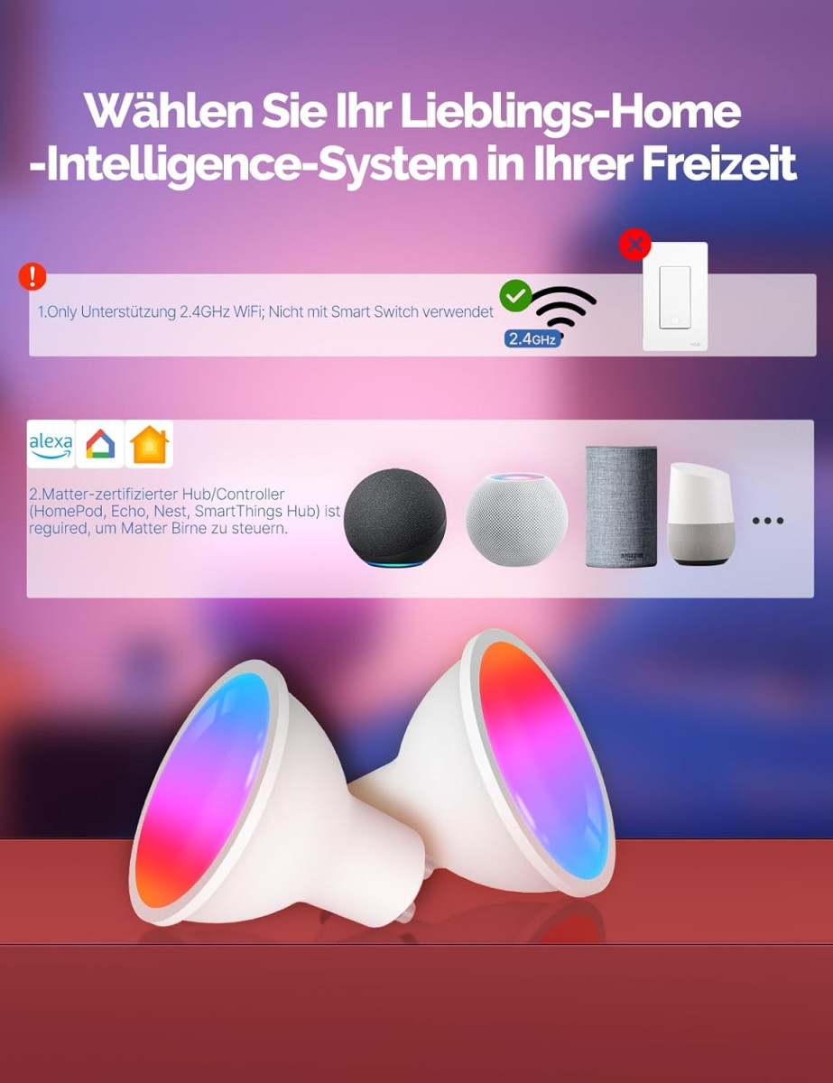 Compatibilitatea becului inteligent MOES Matte Alexa Smart GU10 RGB LED