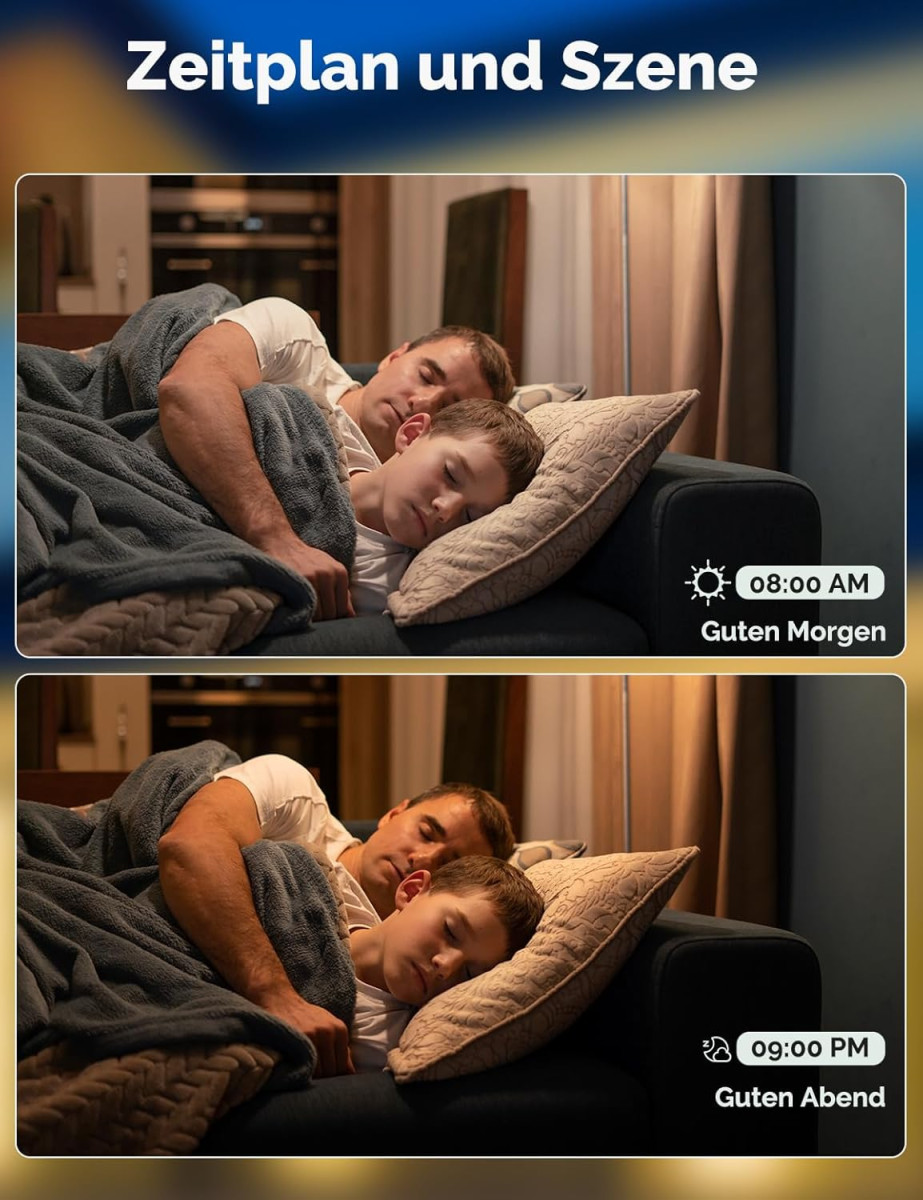 • Dormitor - Setează culori liniștitoare pentru relaxare seara sau folosește-l ca ceas deșteptător cu lumină care crește treptat.