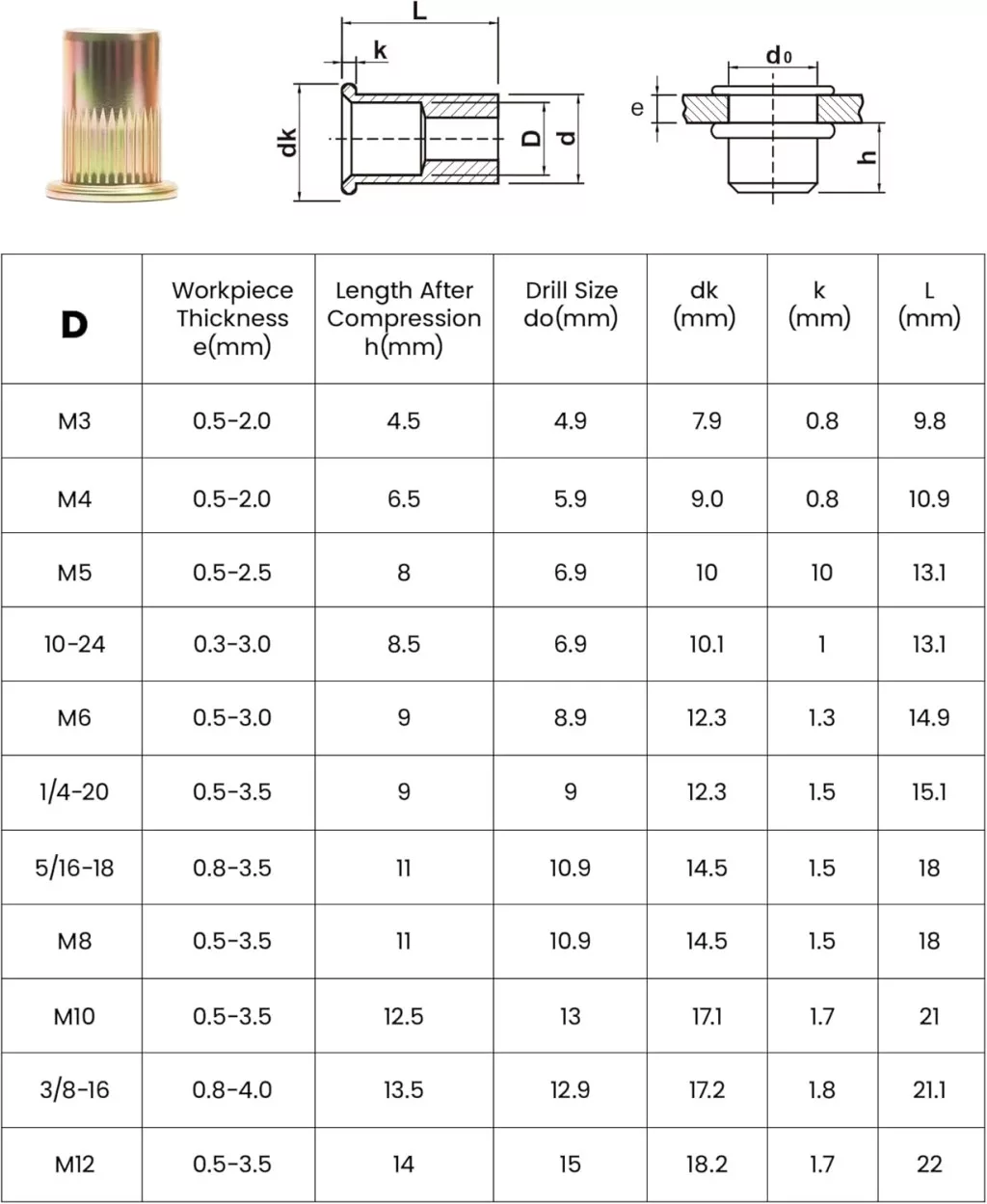 - 13 Mandrine Intercambiabile: În dimensiuni metrice (M3, M4, M5, M6, M8, M10, M12) și SAE (8-32, 10-24, 1/4-20, 5/16-18, 3/8-16, 1/2-13)
