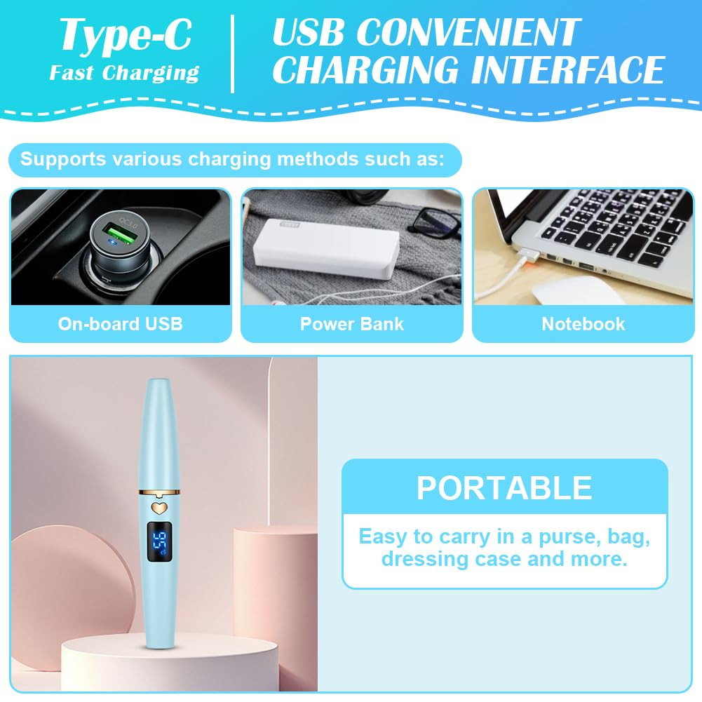 Dimensiunea compactă și designul portabil al dispozitivului permit transportul ușor, fiind perfect pentru călătorii sau pentru rutina zilnică de înfrumusețare. Bateria încorporată de 500mAh oferă o autonomie de până la 30 de zile, eliminând nevoia încărcărilor frecvente.